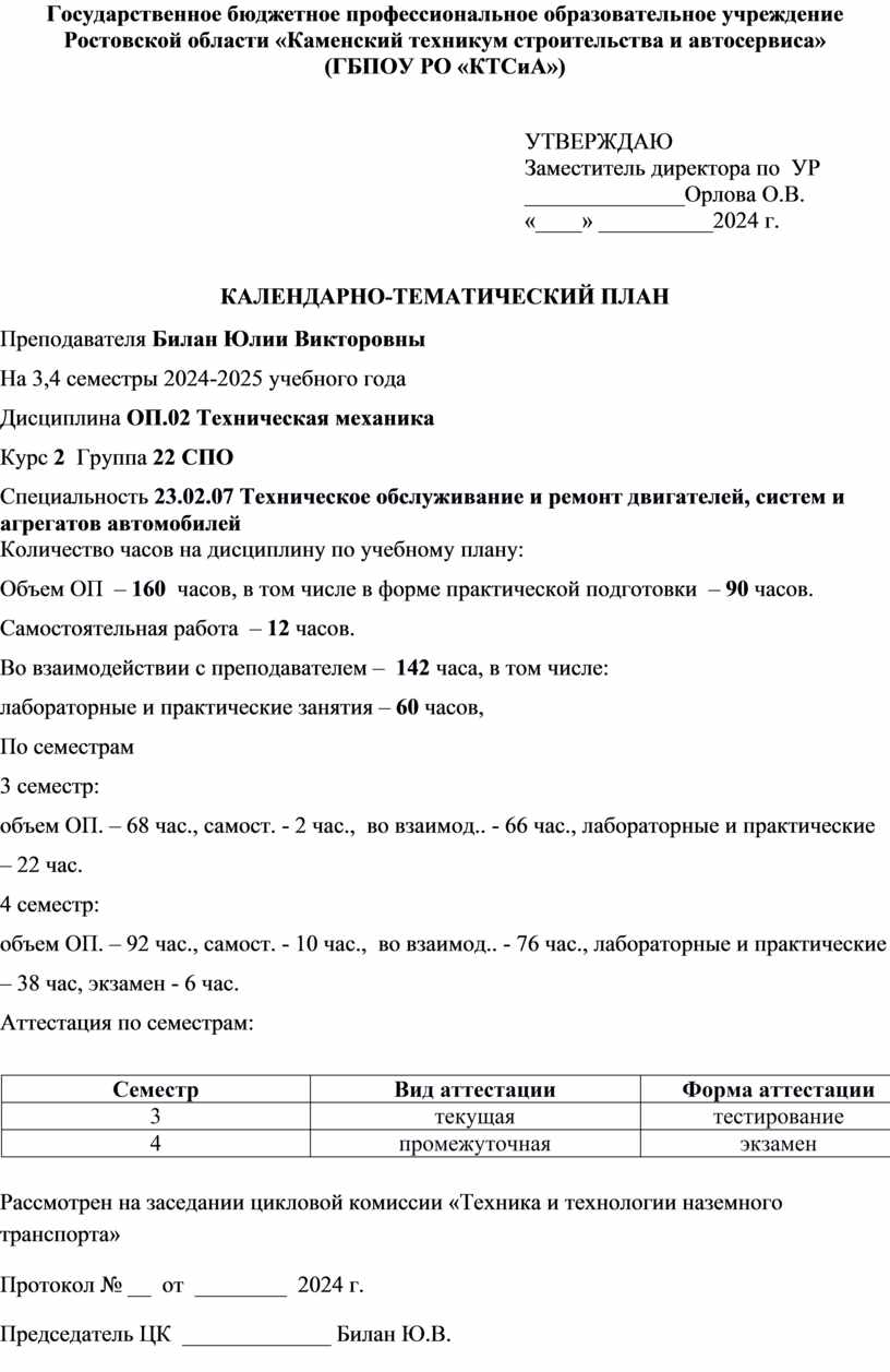 УТВЕРЖДАЮ Заместитель директора по УР ______________Орлова О.В. «____» __________2024 г. |