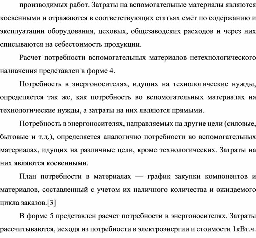 Потребность в энергоносителях, идущих на технологические нужды, определяется так же, как потребность во вспомогательных материалах на технологические нужды, а затраты на них являются прямыми.