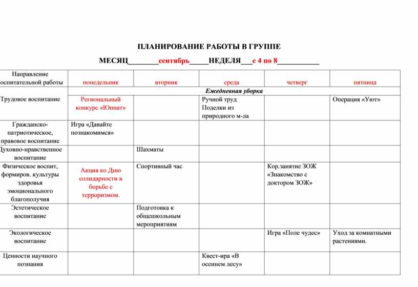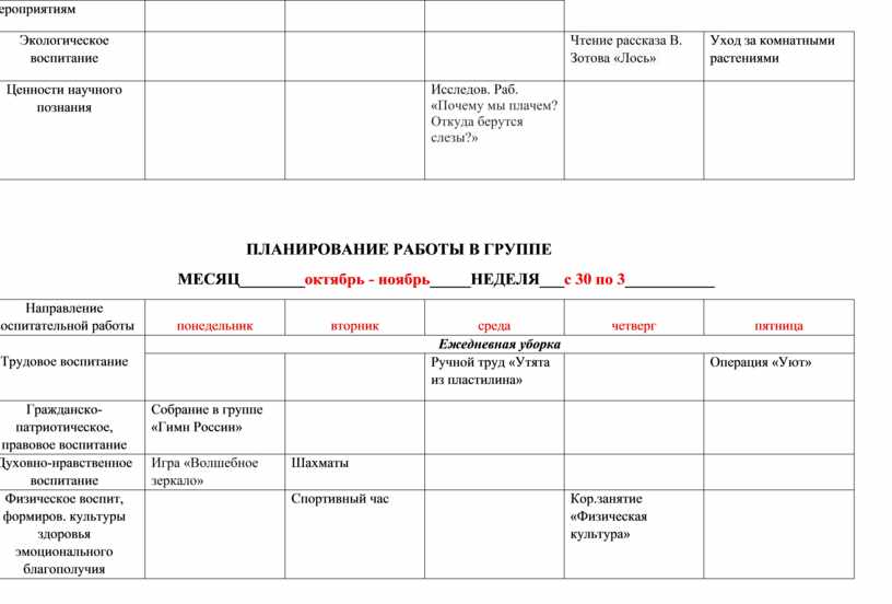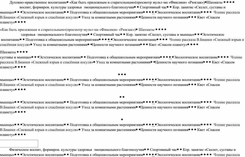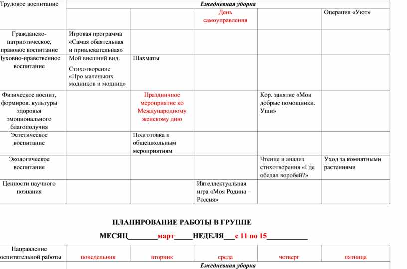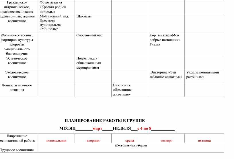 МЕСЯЦ________март_____НЕДЕЛЯ___с 4 по 8___________