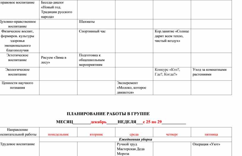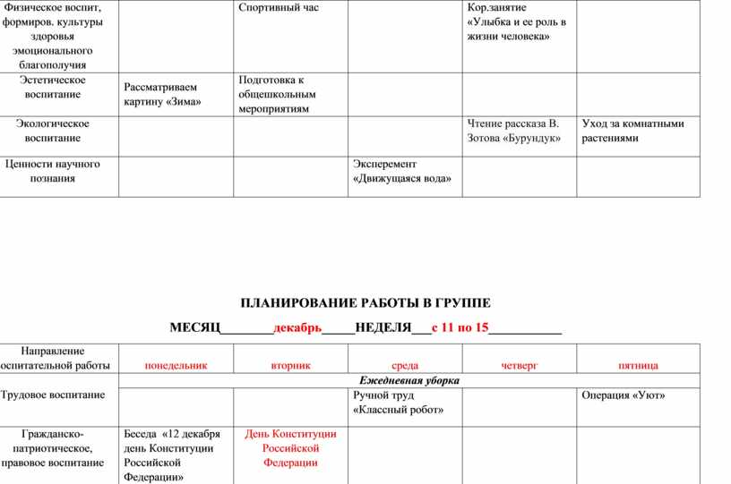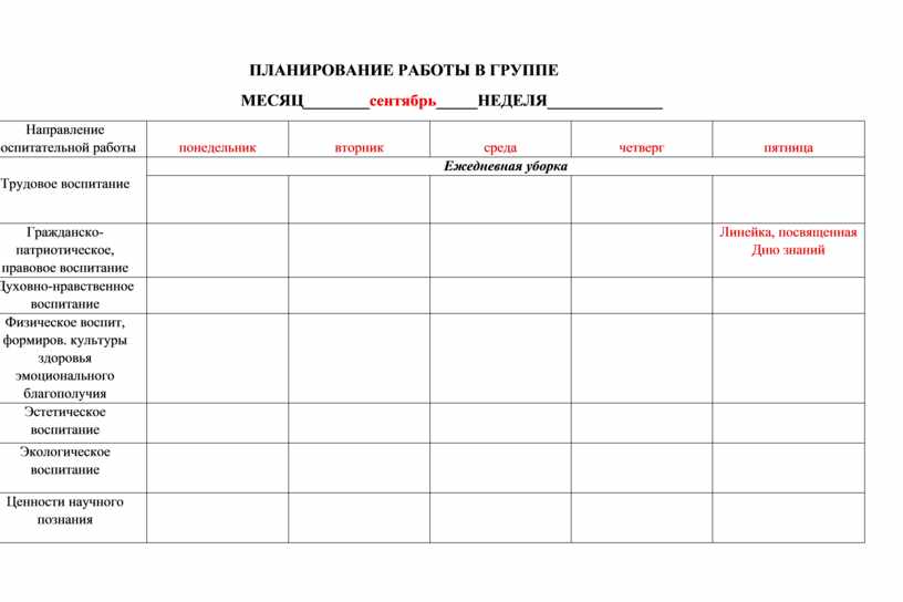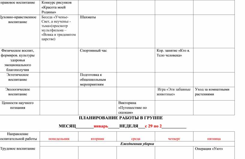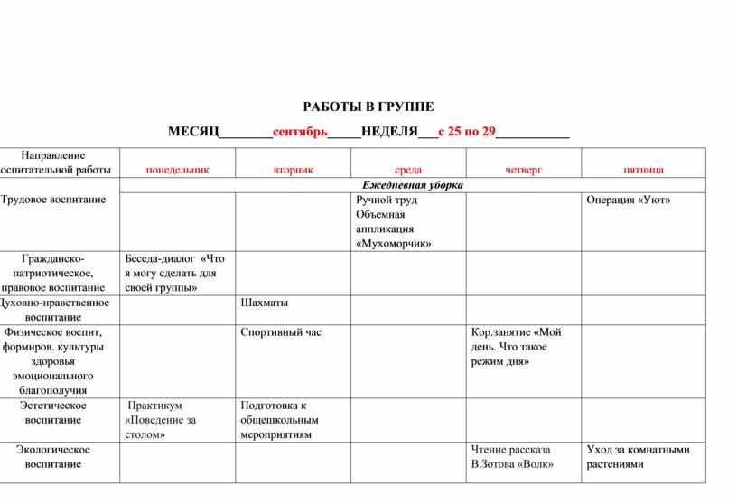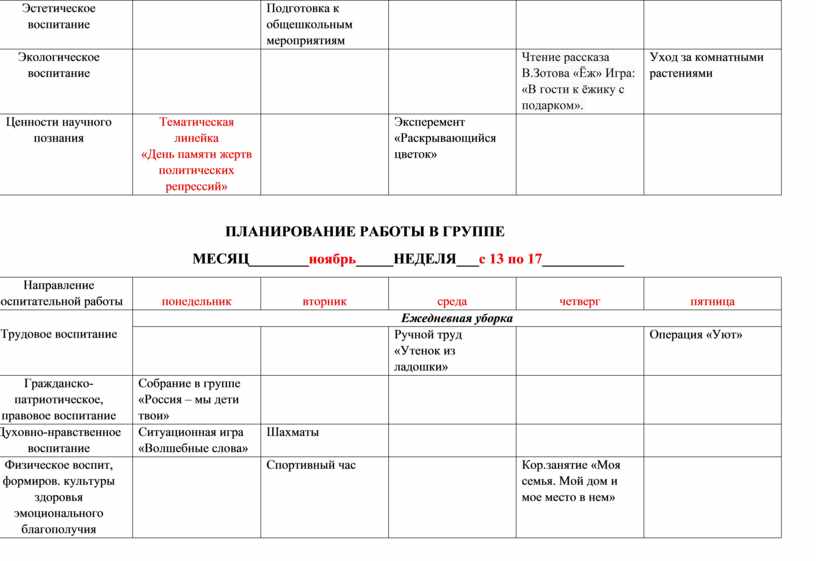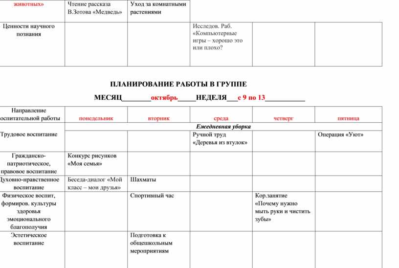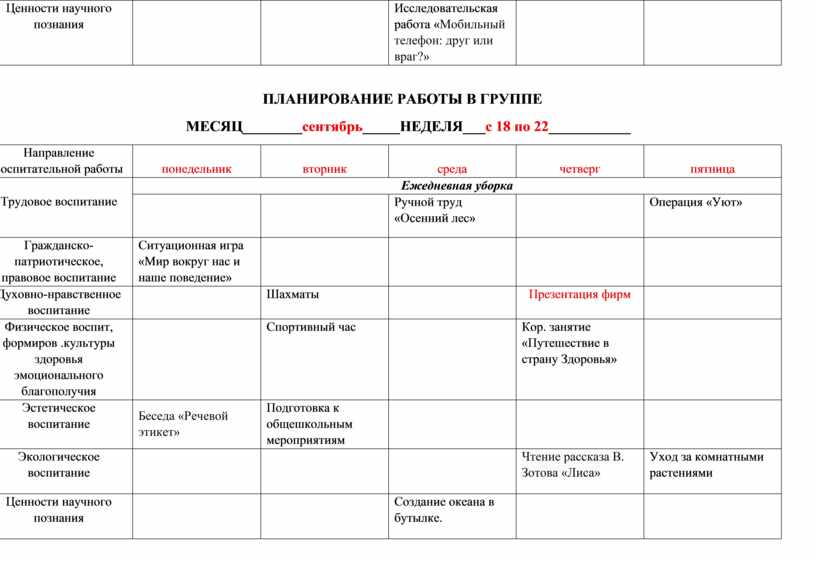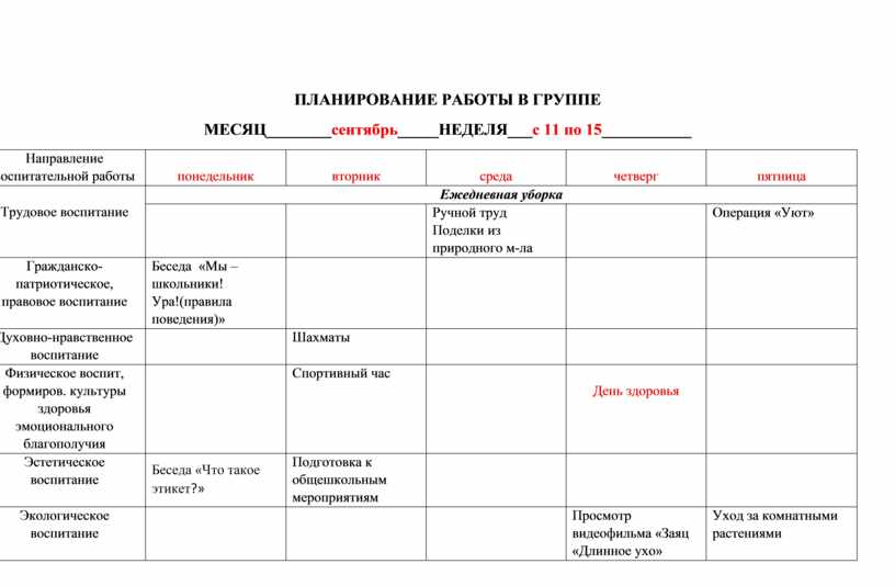 Планирование работы в группе 1 подготовительного класса Пояснительная записка