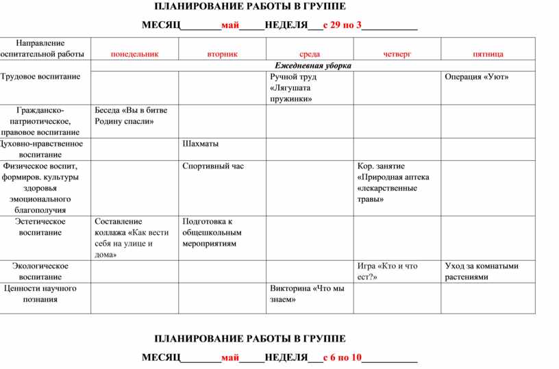 МЕСЯЦ________май_____НЕДЕЛЯ___с 29 по 3___________