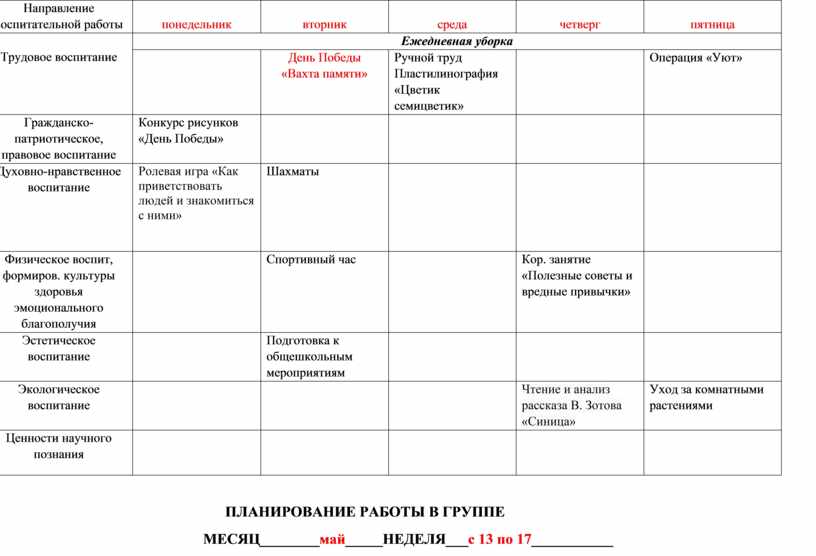 МЕСЯЦ________май_____НЕДЕЛЯ___с 13 по 17___________