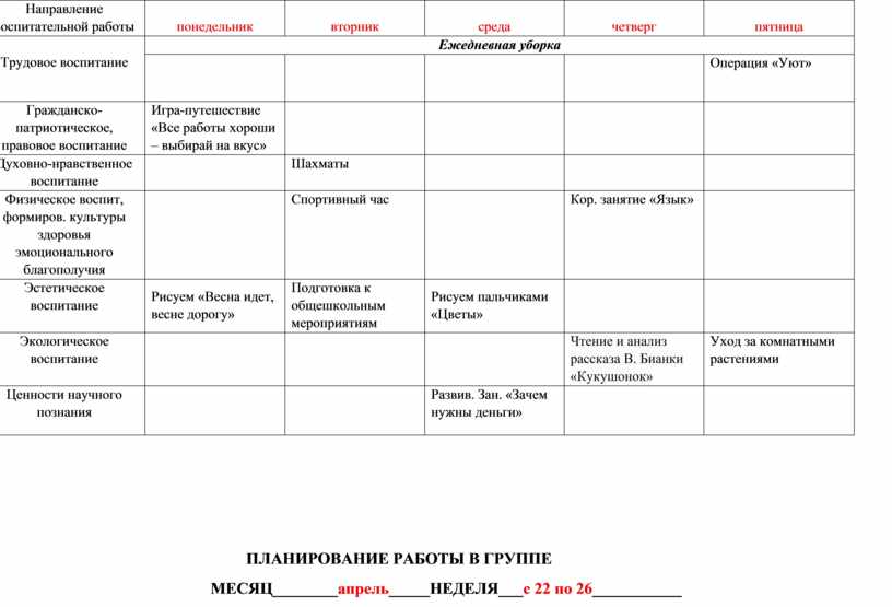 МЕСЯЦ________апрель_____НЕДЕЛЯ___с 22 по 26___________