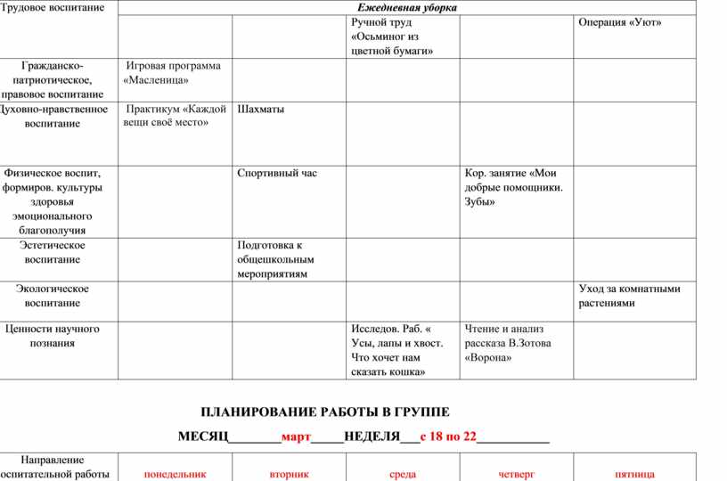 МЕСЯЦ________март_____НЕДЕЛЯ___с 18 по 22___________