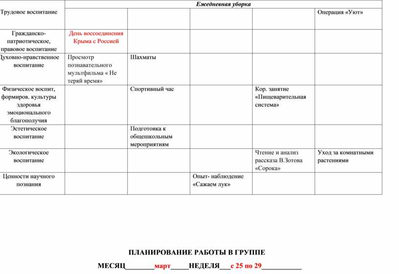 МЕСЯЦ________март_____НЕДЕЛЯ___с 25 по 29___________
