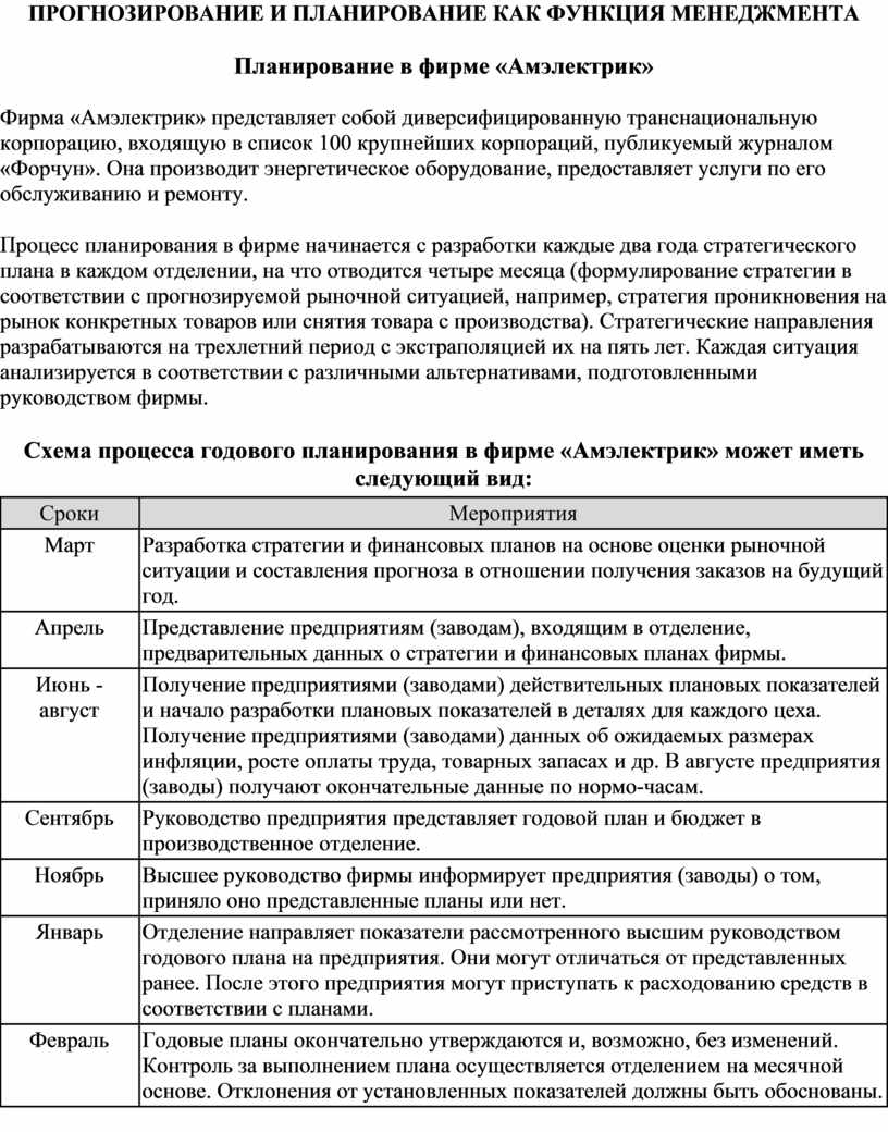 Схема процесса годового планирования в фирме «Амэлектрик» может иметь следующий вид: