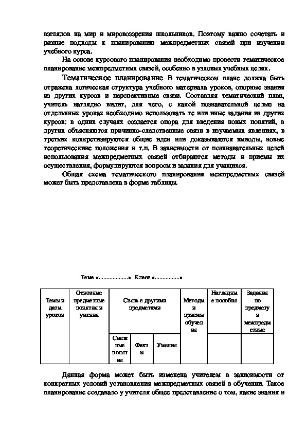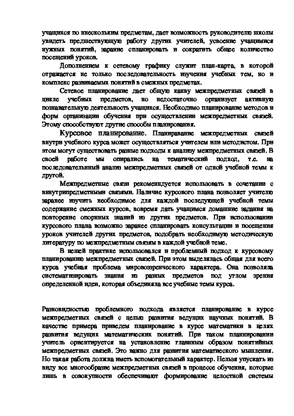 планирования межпредметных связей сетевое, курсовое, тематическое и