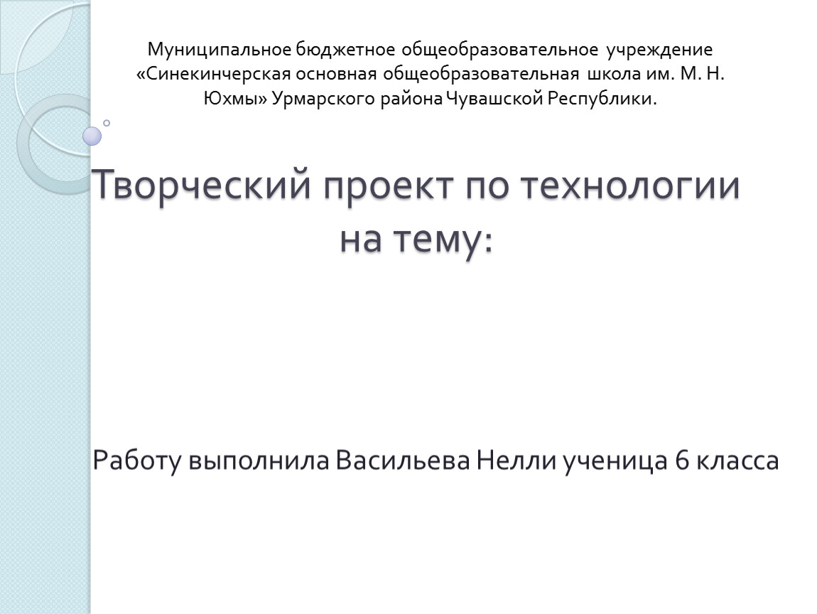 Творческий проект по технологиина тему: