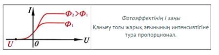 I ток күшін нөлге дейін кеміту үшін анод пен катодтың арасына Uж теріс потенциалдар айырымын түсіру керек. Оны тежеуші кернеу немесе жабушы потенциал деп атайды. Фотоэффект заңдары: б) Жарық ағынының интенсивтілігін (Ф) (ν−const) өзгертеміз