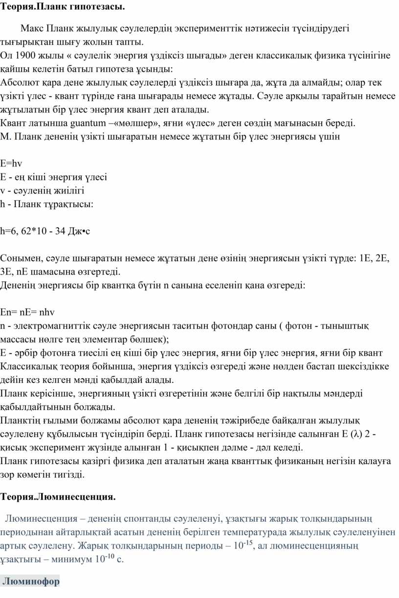 сәулелену құбылысын түсіндіріп берді. Планк гипотезасы