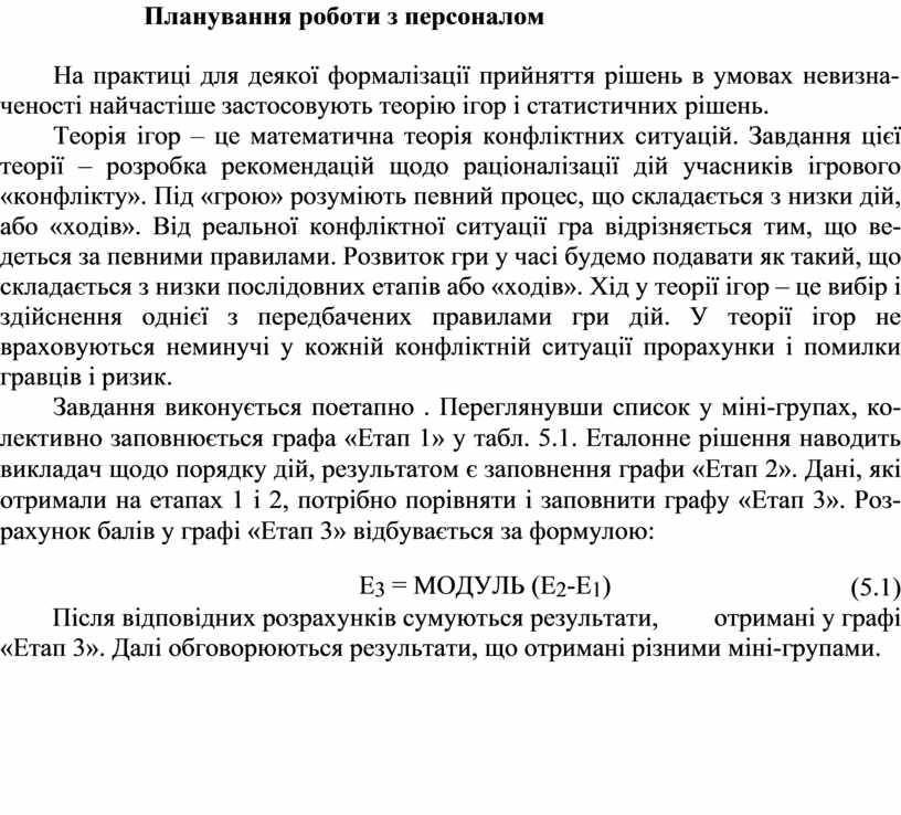 Теорія ігор – це математична теорія конфліктних ситуацій. Завдання цієї теорії – розробка рекомендацій щодо раціоналізації дій учасників ігрового «конфлікту». Під «грою» розуміють певний процес, що складається з низки дій, або «ходів». Від реальної конфліктної ситуації гра відрізняється тим, що ве-деться за певними правилами. Розвиток гри у часі будемо подавати як такий, що складається з низки послідовних етапів або «ходів». Хід у теорії ігор – це вибір і здійснення однієї з передбачених правилами гри дій. У теорії ігор не враховуються неминучі у кожній конфліктній ситуації прорахунки і помилки гравців і ризик.