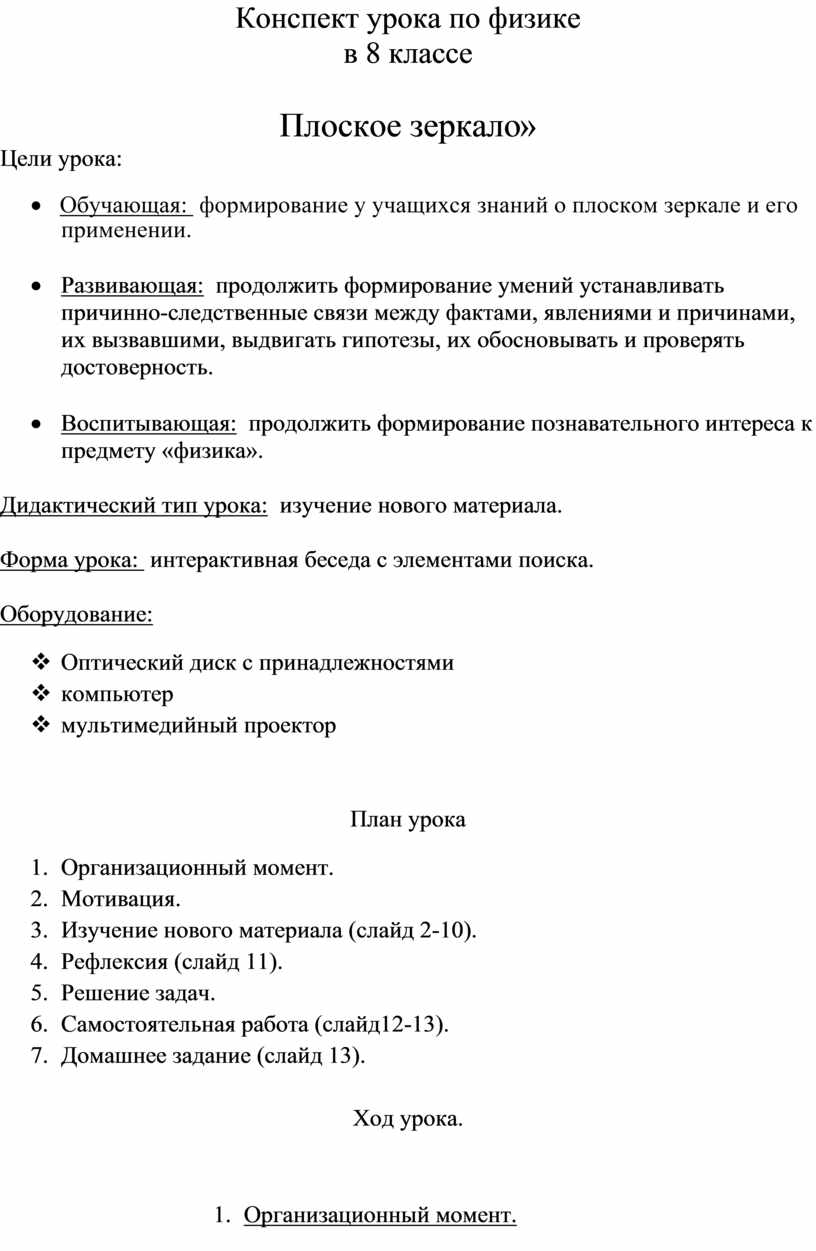 · Обучающая: формирование у учащихся знаний о плоском зеркале и его применении.
