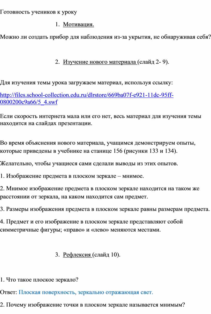 Ответ: Изображение находится на том же расстоянии, что и предмет перед зеркалом; размеры изображения равны размерам предмета; «право» и «лево» меняются местами.