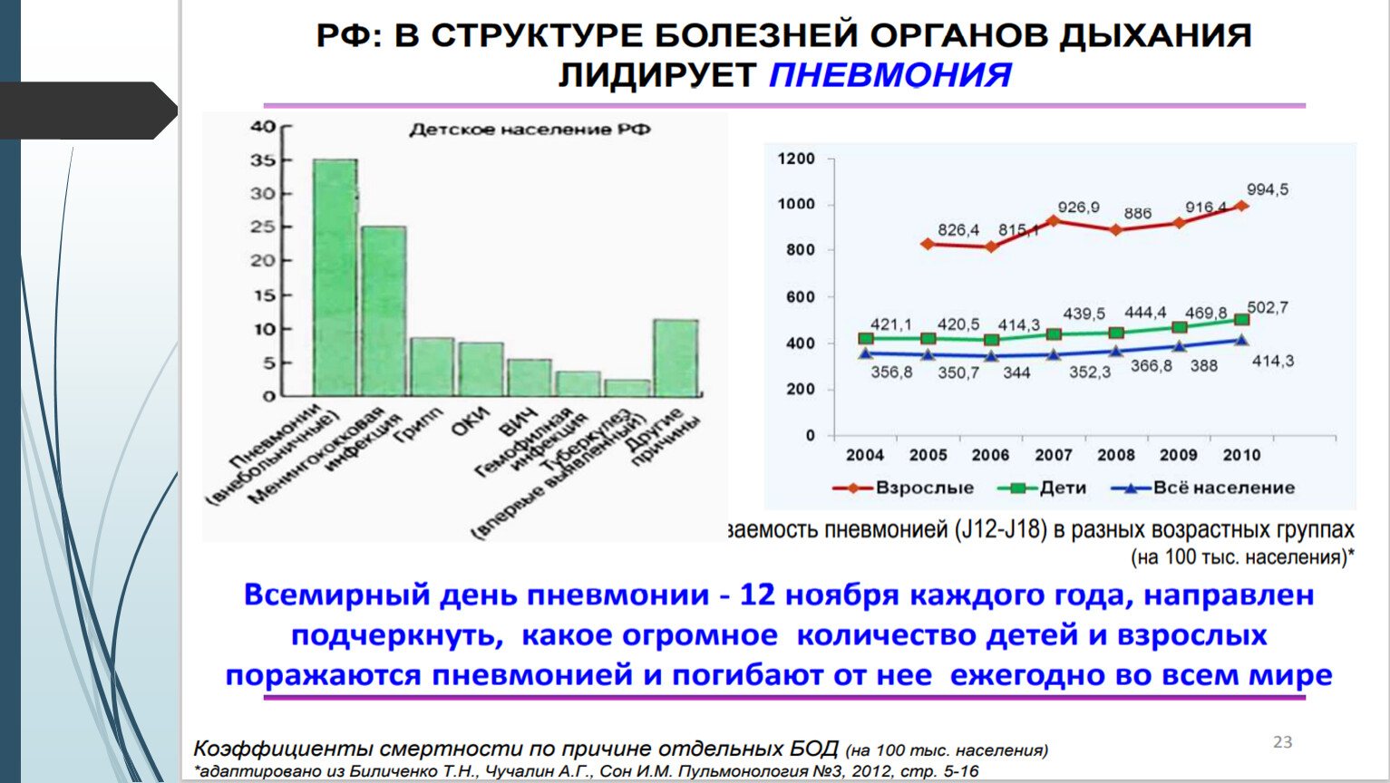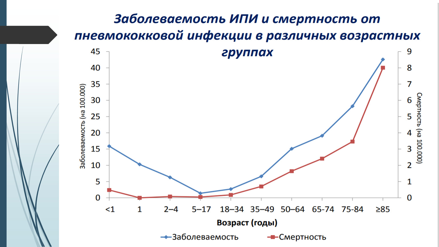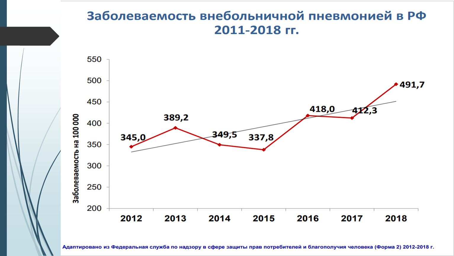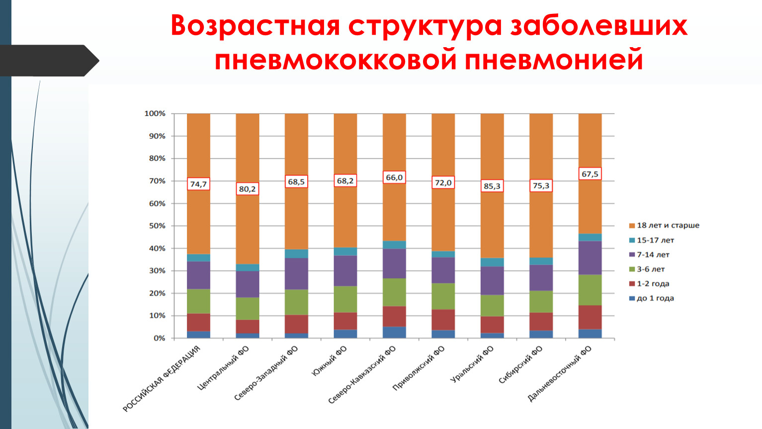 Пневмококк – ведущий патоген среди бактериальных пневмоний Доля S. Pneumoniae среди бактериальных пневмоний, %