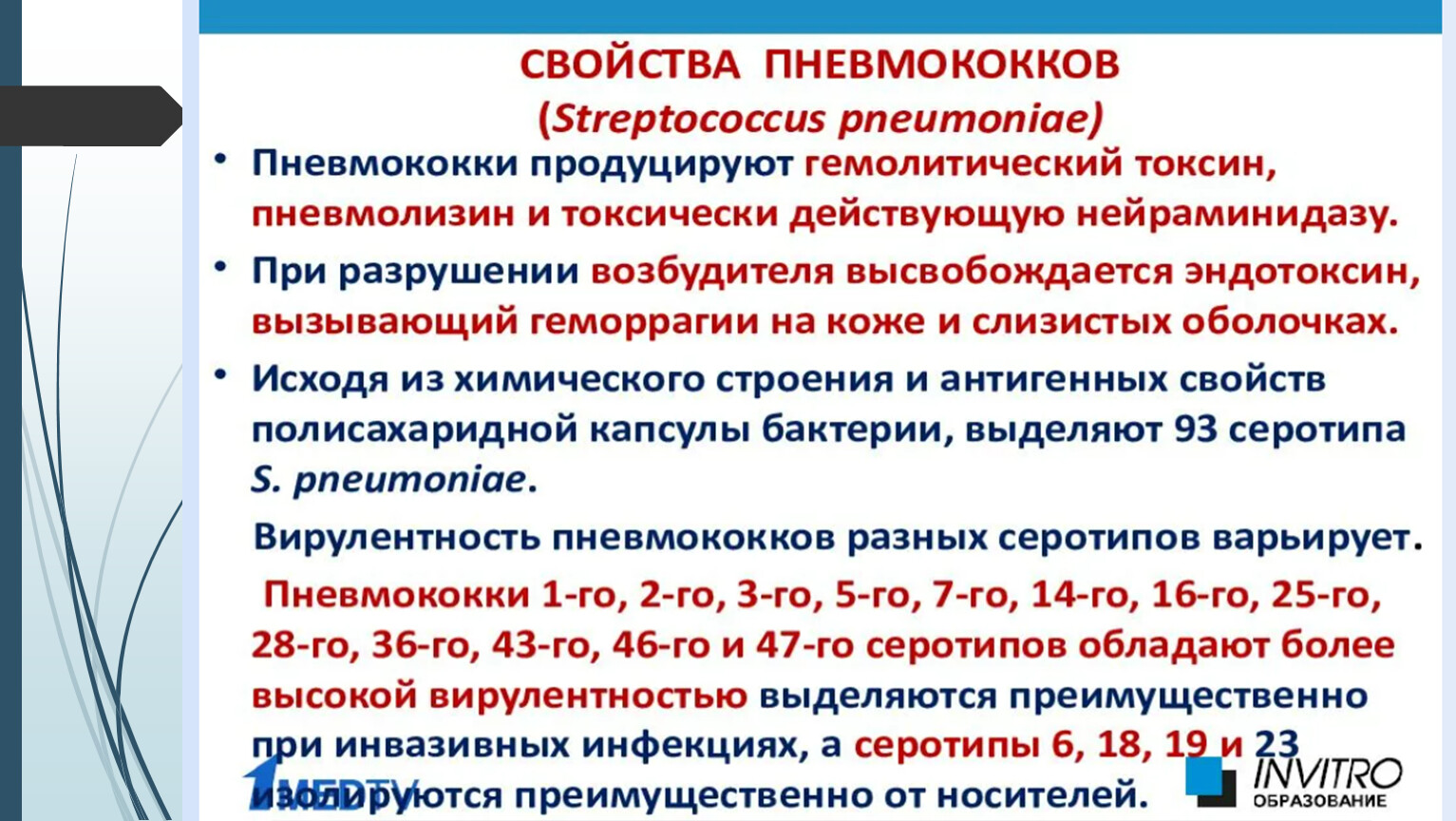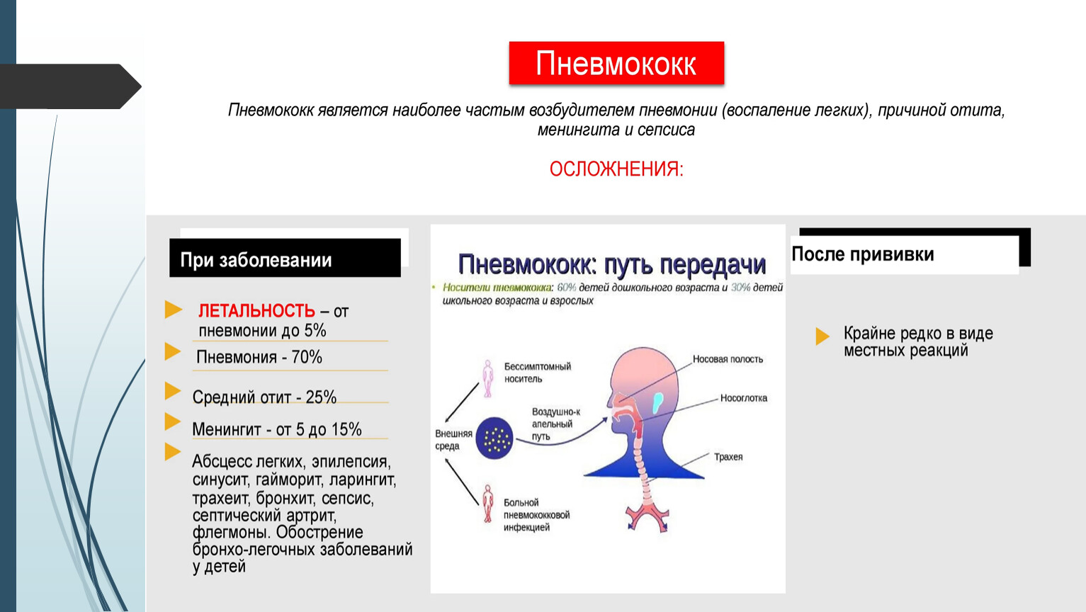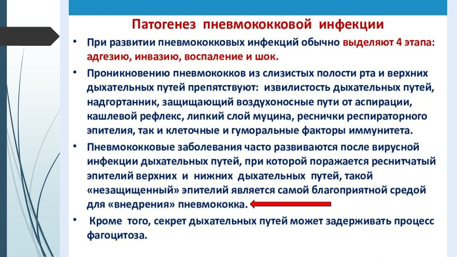 • Несмотря на бессимптомную колонизацию носоглотки и слабый иммунный ответ, S. pneumoniae инактивирует воспалительные процессы и подавляет клиренс – это и определяет возможность развития пневмонии