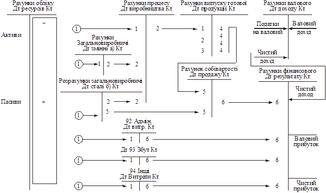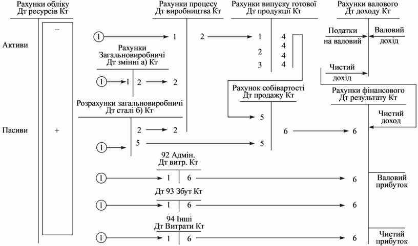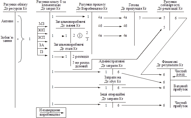 Дані показники про затрати як інформаційна сукупність одержують відображення на вищезгаданих рахунках. Схематично цей процес показано на рис. Б.4.15.