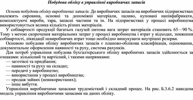 Управління виробничими запасами трудомісткий і складний процес. На рис. Б.3.6.2 наведена модель управління виробничими запасами на даних обліку.