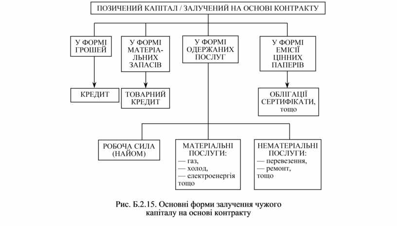 Основні форми тимчасового залучення чужих коштів на основі контракту унаочнює рис. Б.2.15.