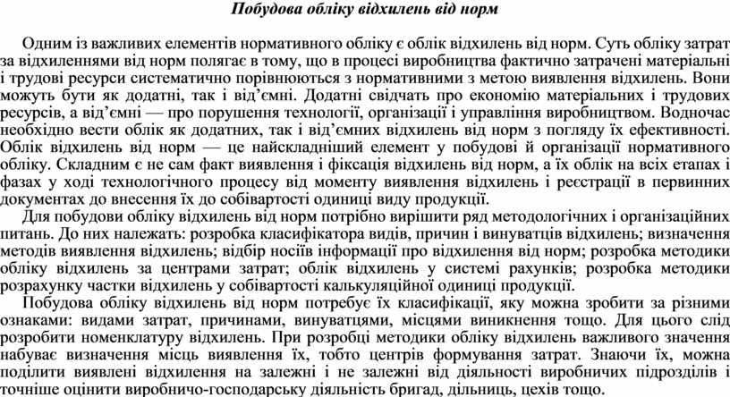 Побудова обліку відхилень від норм