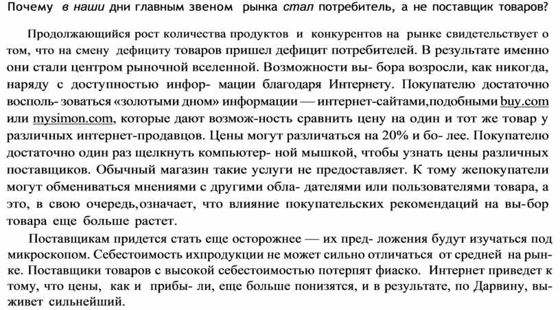 Почему в наши дни главным звеном рынка стал потребитель, а не поставщик товаров?
