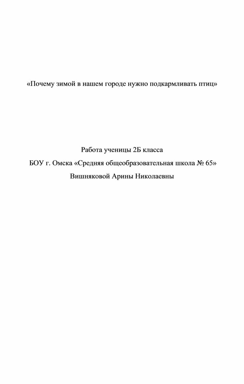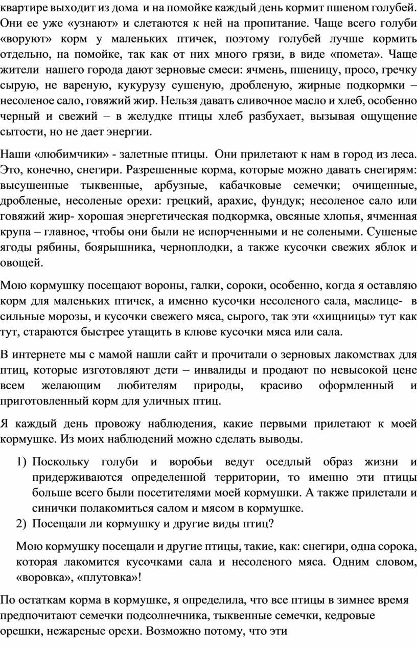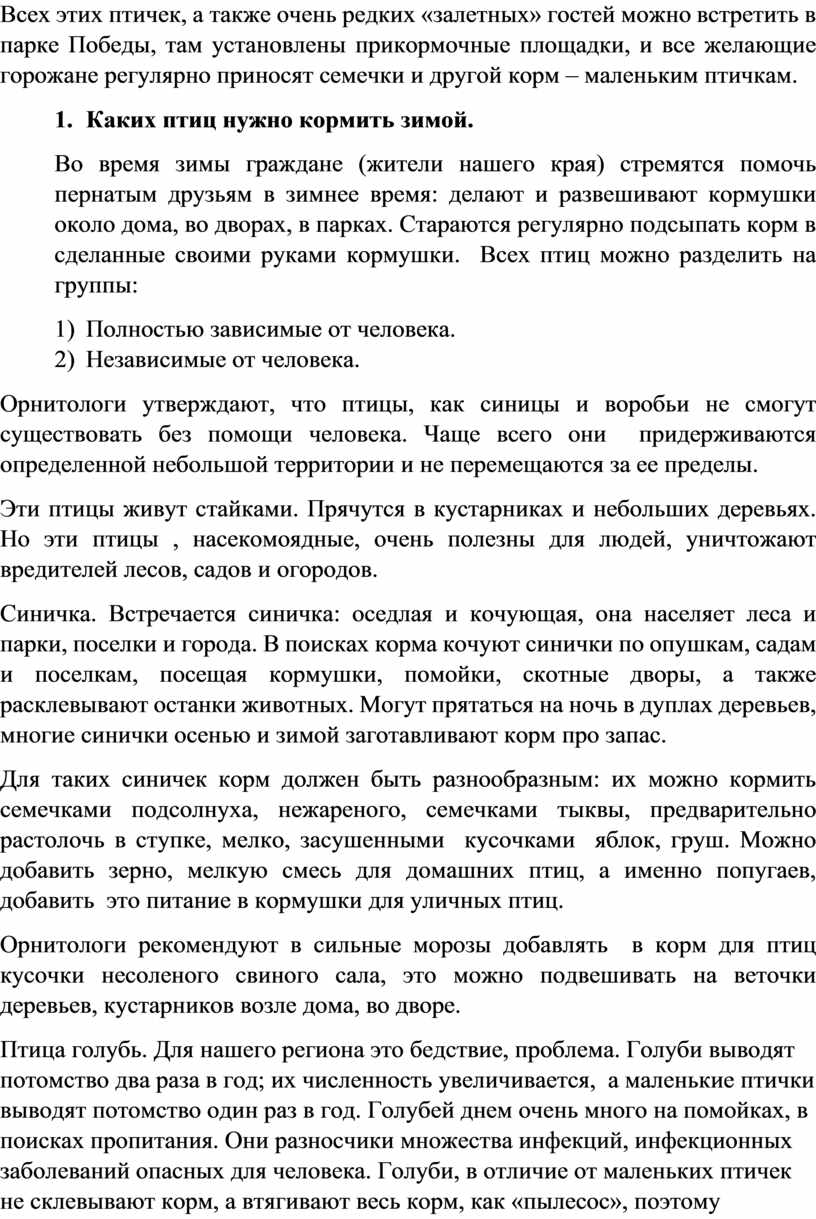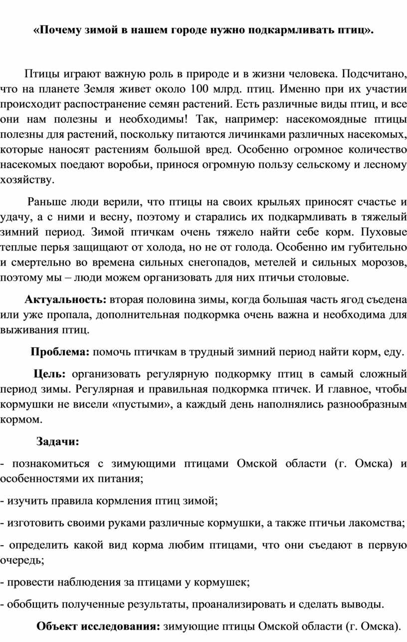 «Почему зимой в нашем городе нужно подкармливать птиц»