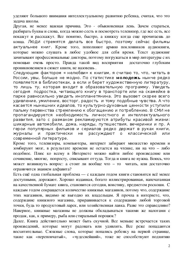 Следующим фактором « нелюбви» к книгам, я считаю то, что, читать в