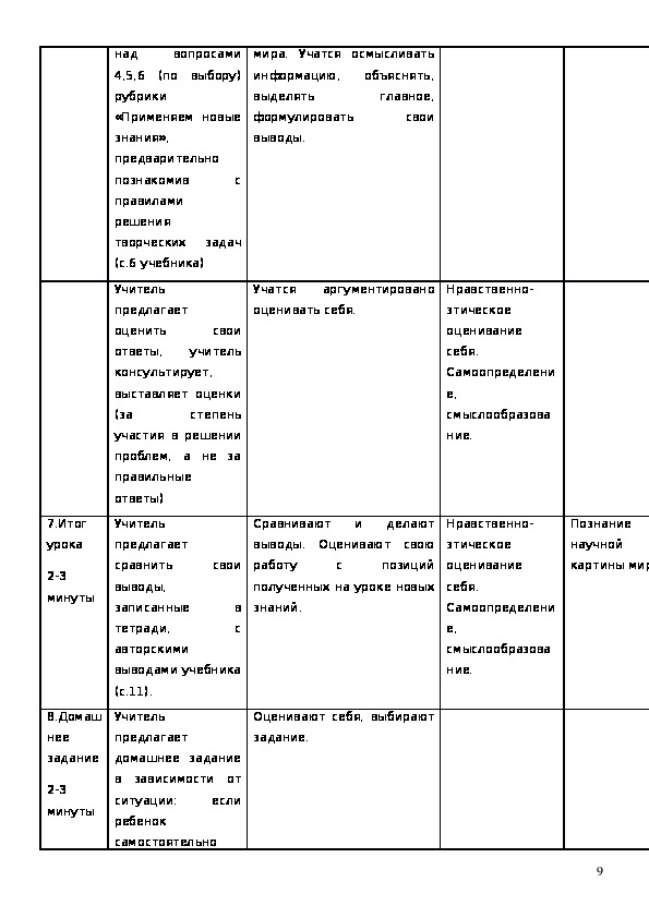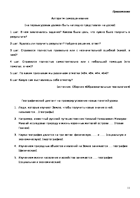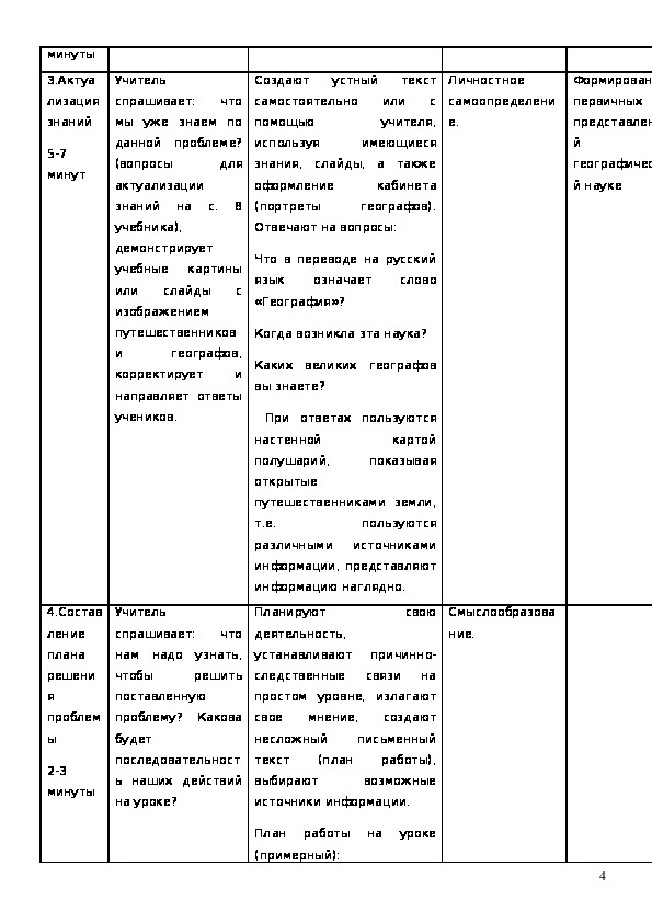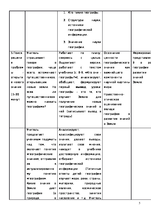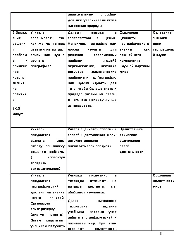 На уроке используются методы эвристической беседы, самостоятельная работа учащихся с текстом, рисунками. Учащиеся на уроке учатся, ставить цель своей деятельности, планировать способы ее достижения, анализируют, классифицируют свои знания, делают выводы, излагают свое мнение, находят в учебнике достоверную информацию, отбирают источники географической информации