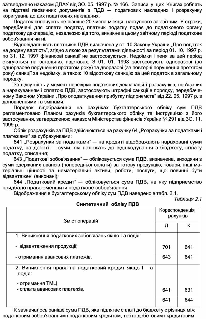 Відображення в бухгалтерському обліку сум ПДВ наведено в табл. 2.1.