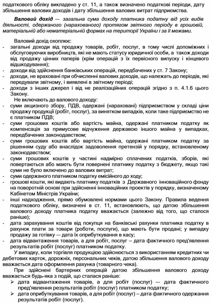 податкового обліку викладено у ст. 11, а також визначено податкові періоди, дату збільшення валових доходів і дату збільшення валових витрат підприємства.