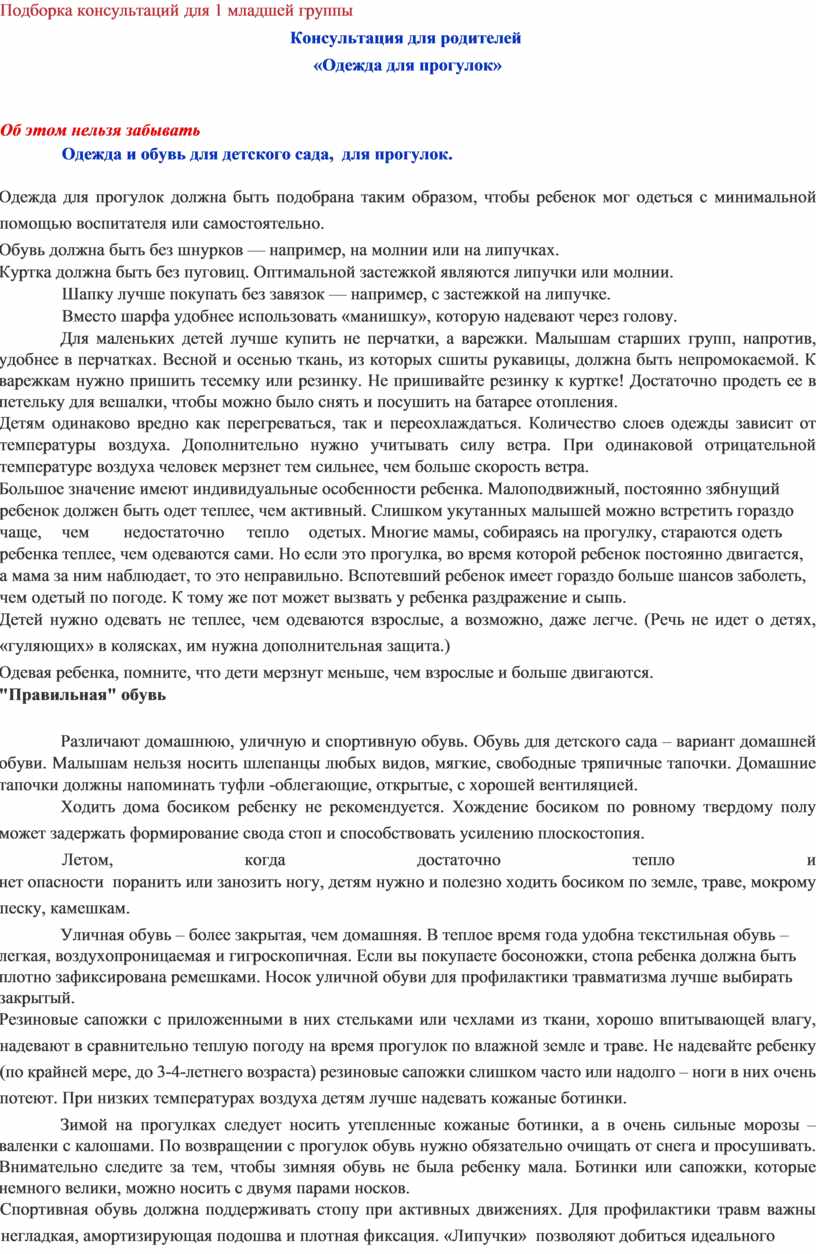 Одежда для прогулок должна быть подобрана таким образом, чтобы ребенок мог одеться с минимальной помощью воспитателя или самостоятельно.