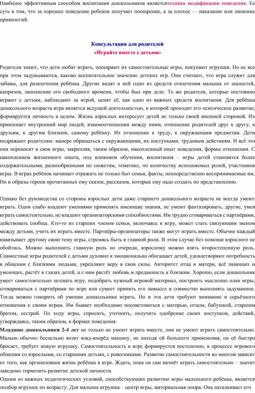 Консультация для родителей: