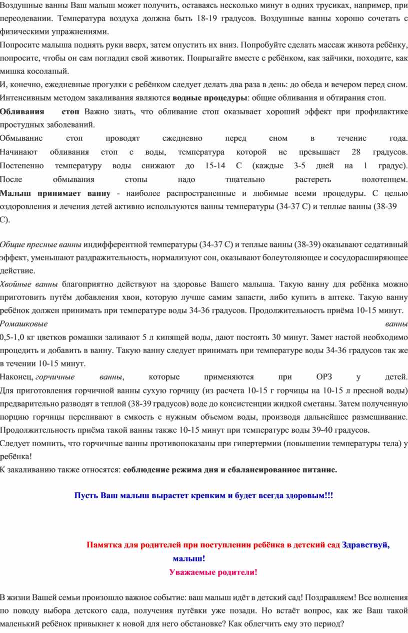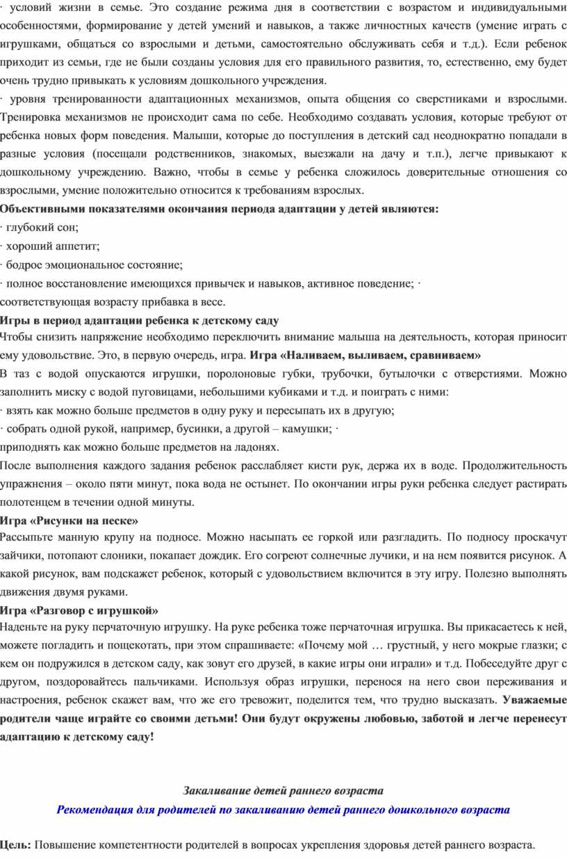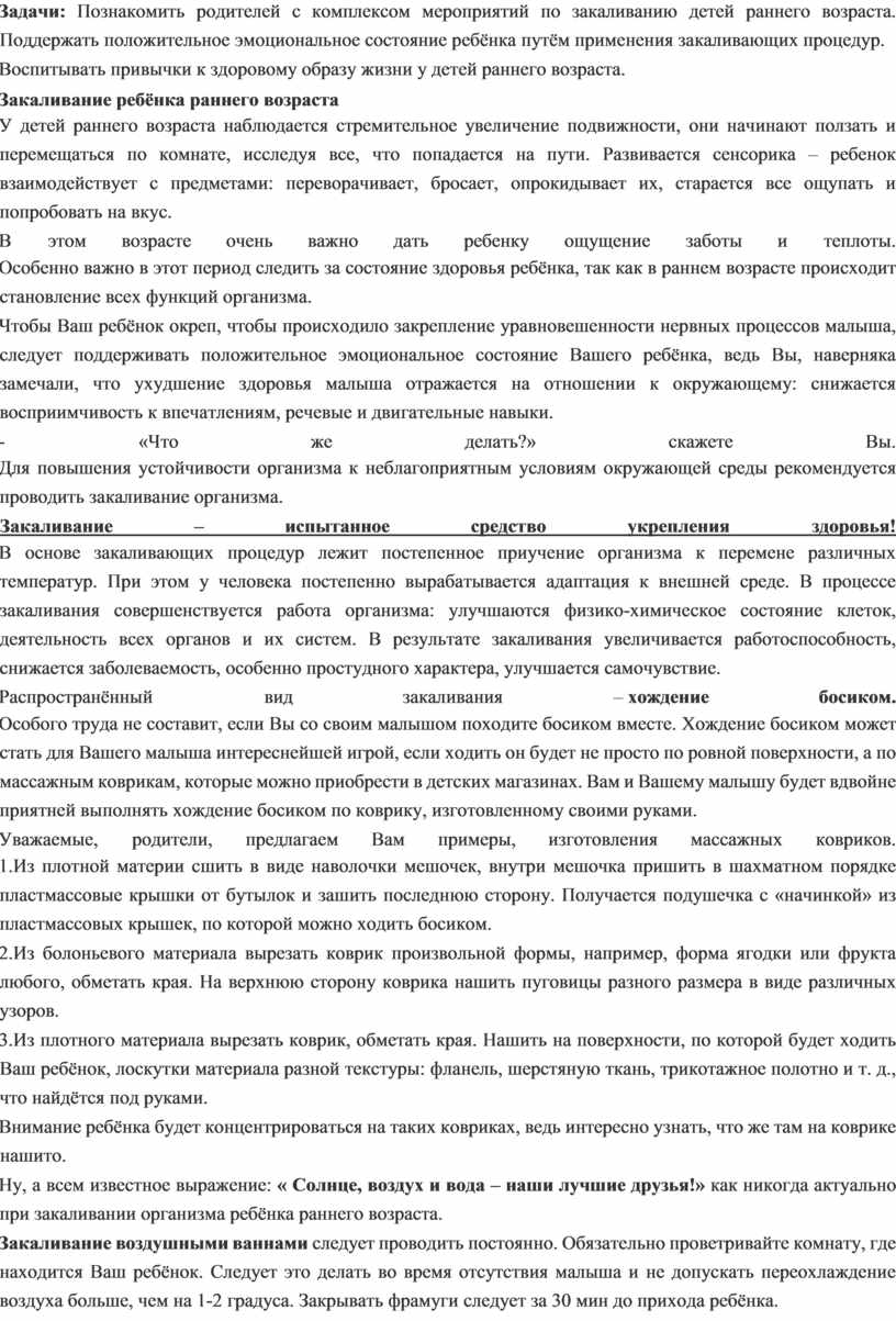 Рекомендация для родителей по закаливанию детей раннего дошкольного возраста