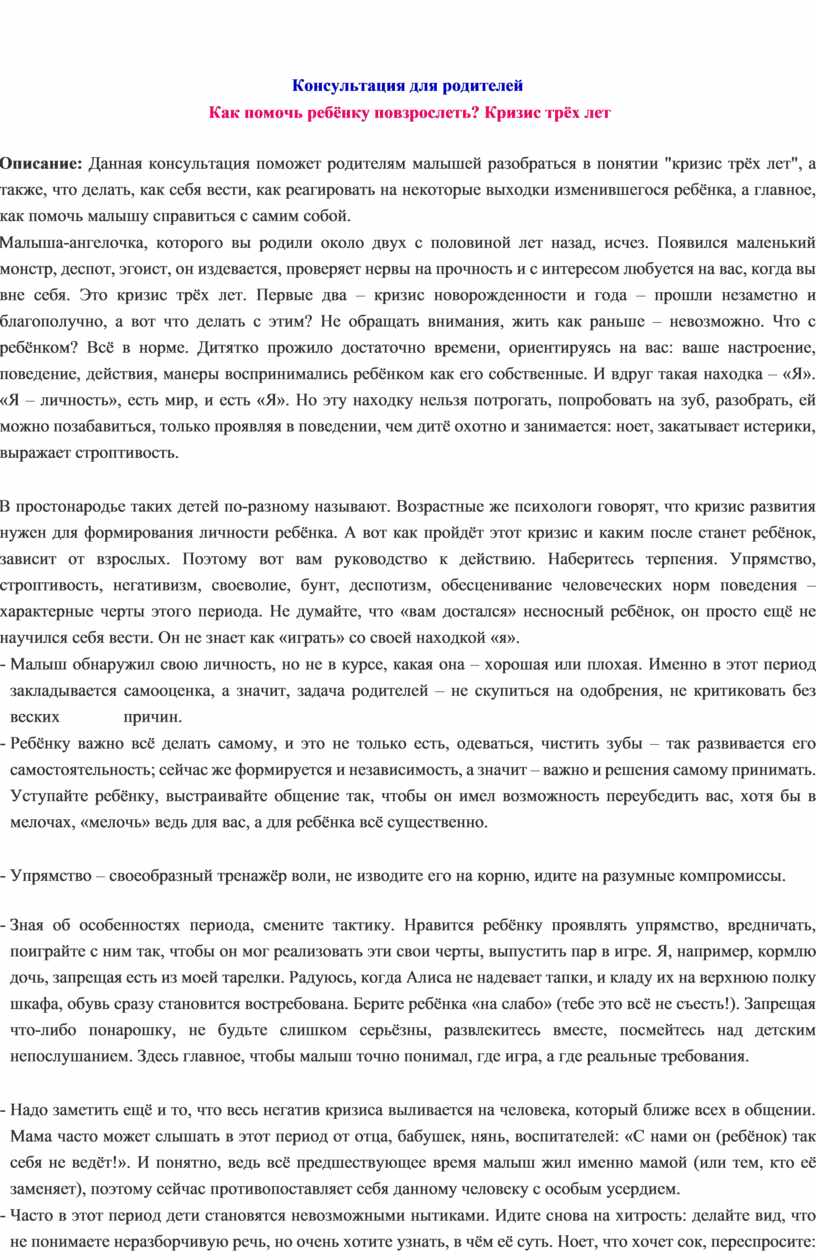 Консультация для родителей