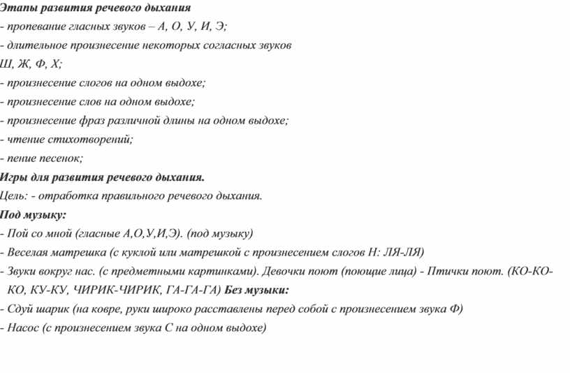 Этапы развития речевого дыхания