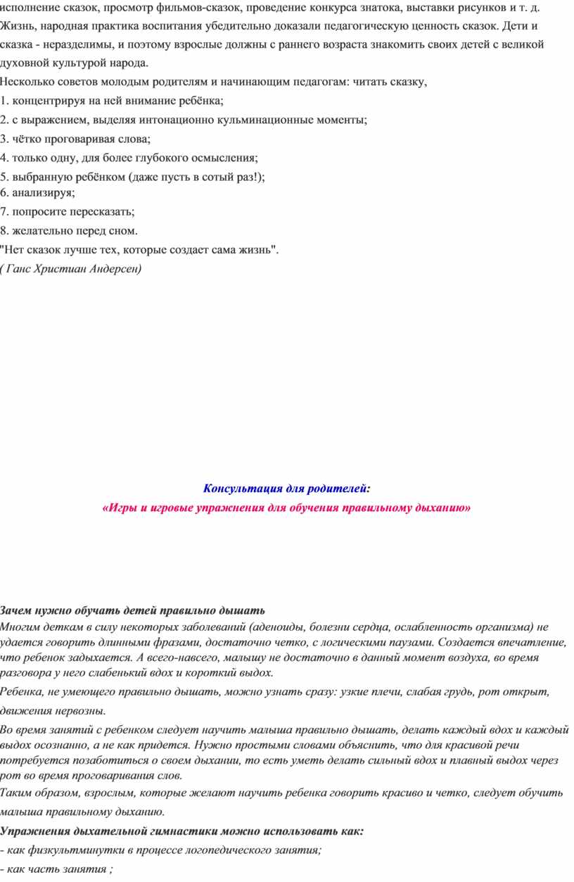 - как игры; Развитие речевого дыхания