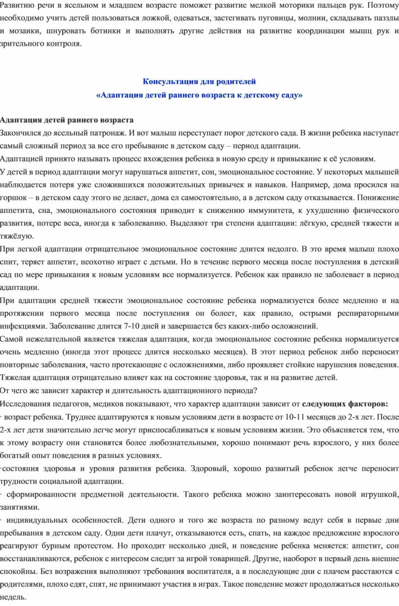 Адаптация детей раннего возраста
