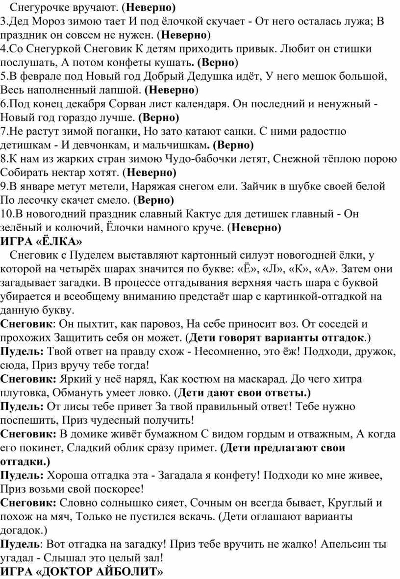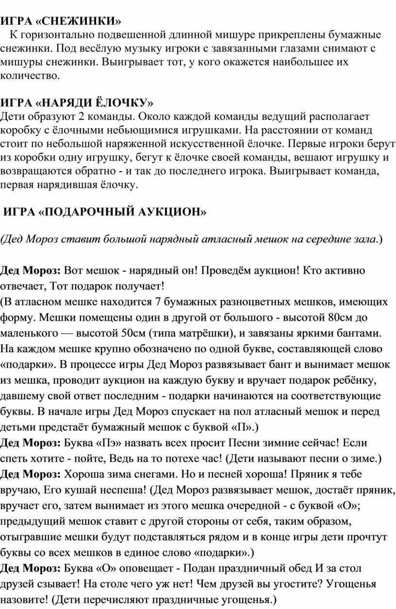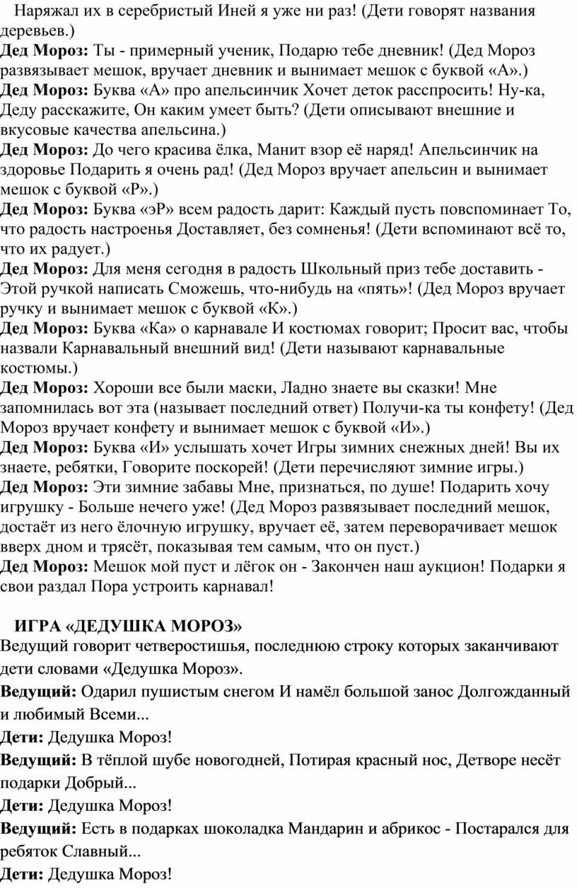 соответствующие буквы. В начале игры Дед Мороз спускает на пол атласный мешок и