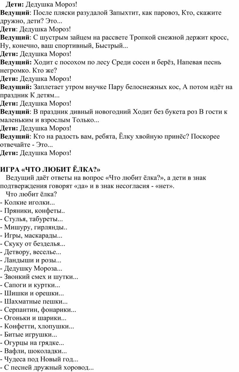 последнюю строку которых заканчивают дети словами «Дедушка Мороз».