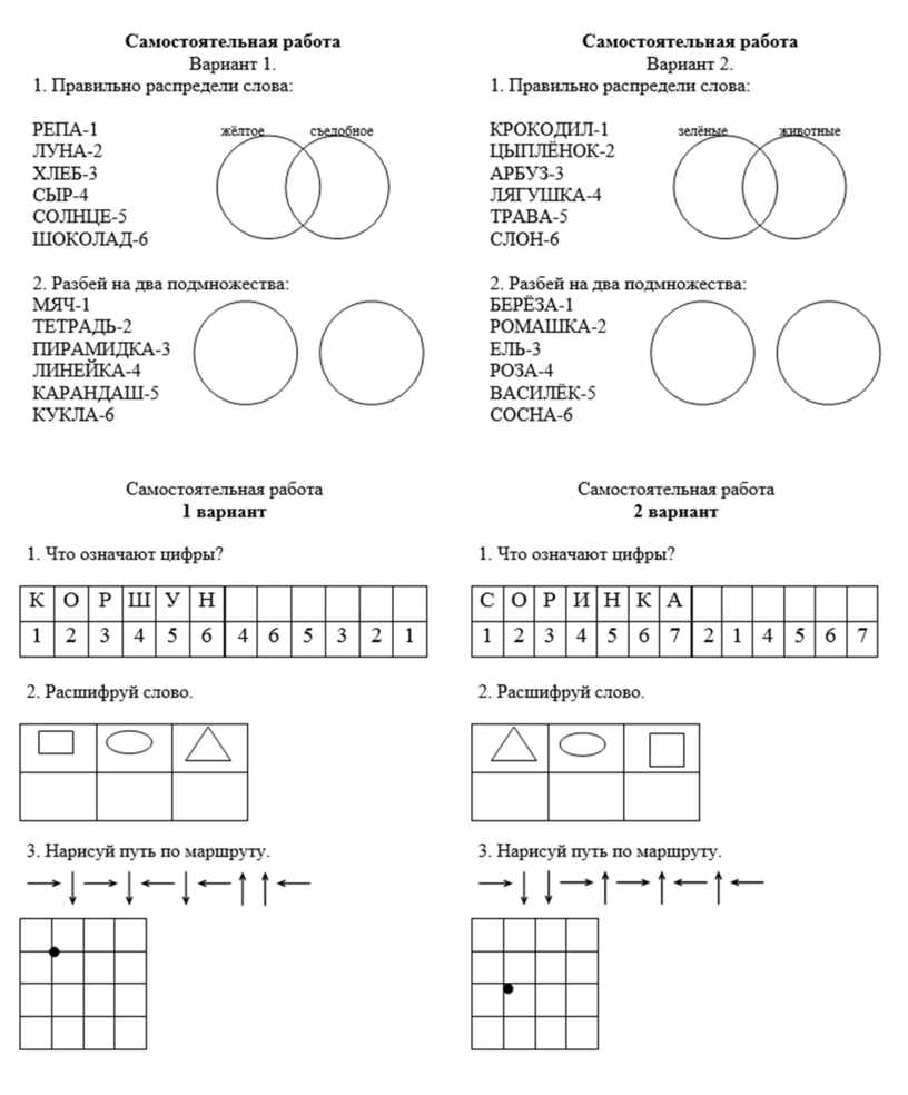 Набор проверочных работ по информатике и логике для обучающихся 1 классов