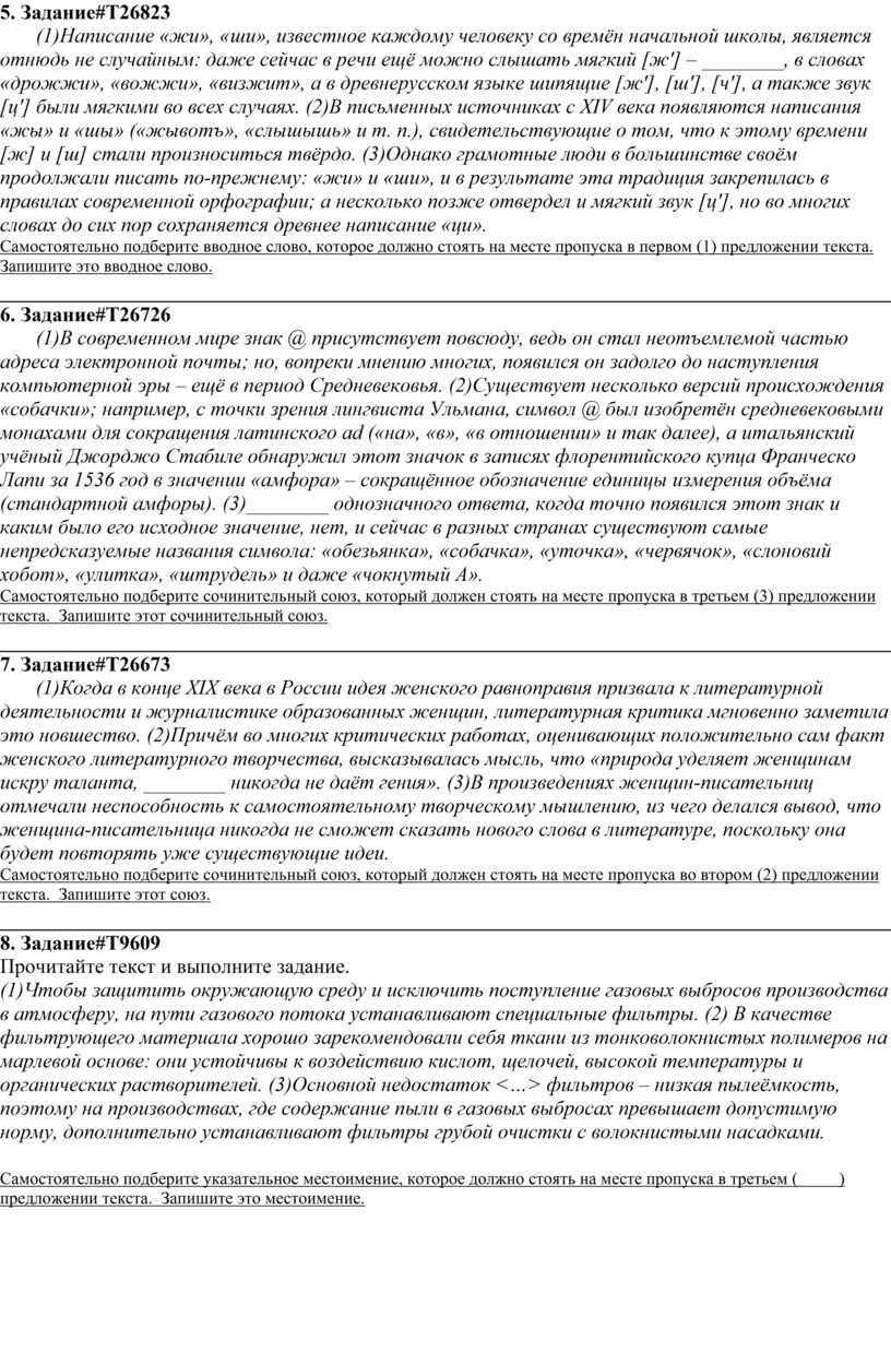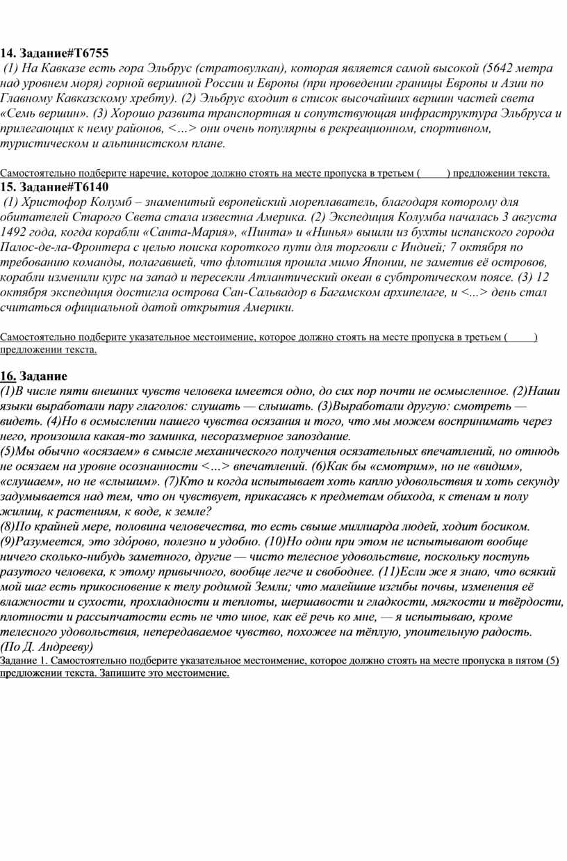 Задание 1. Самостоятельно подберите указательное местоимение, которое должно стоять на месте пропуска в пятом (5) предложении текста. Запишите это местоимение.