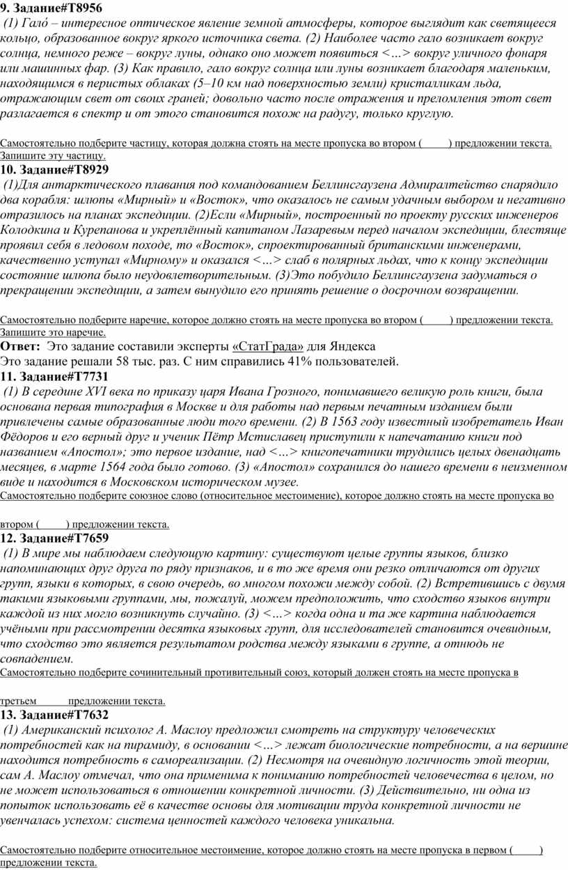 Ответ: Это задание составили эксперты «СтатГрада» для Яндекса