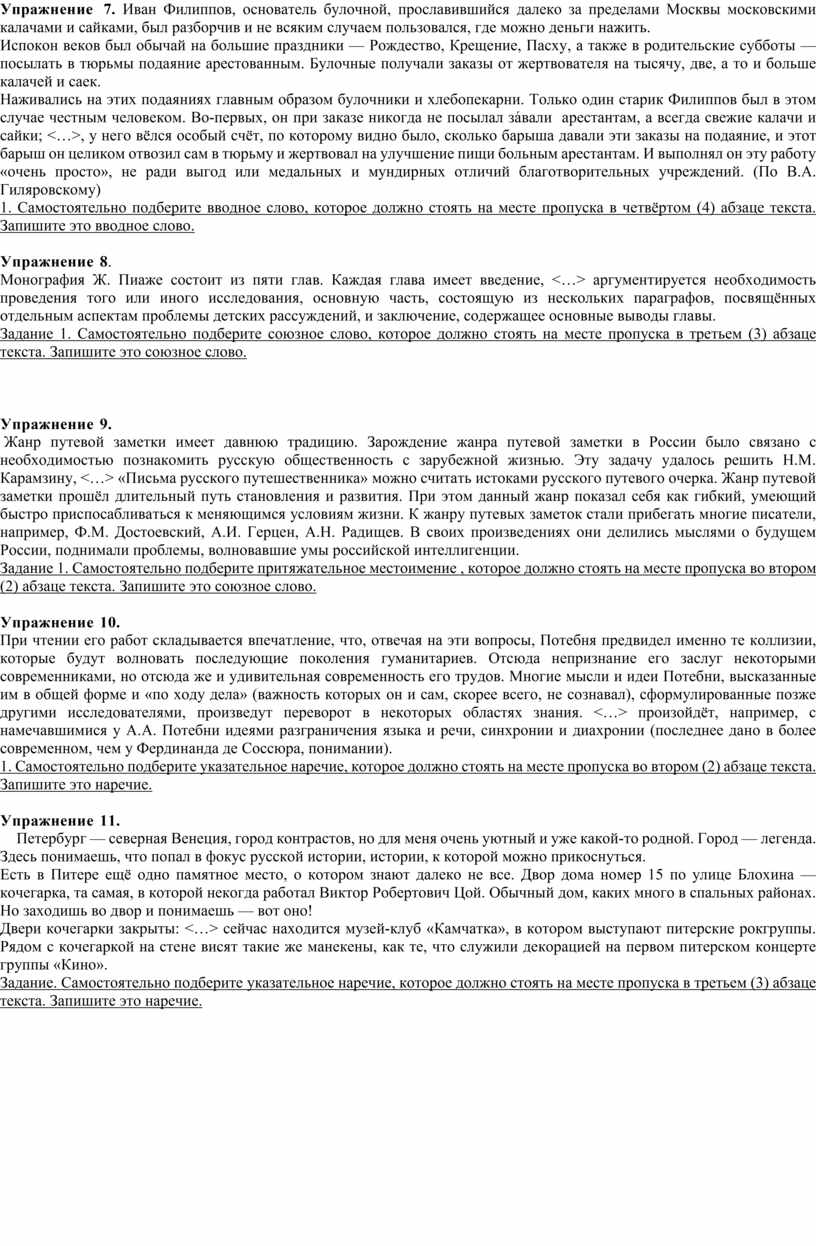 Упражнение 7. Иван Филиппов, основатель булочной, прославившийся далеко за пределами Москвы московскими калачами и сайками, был разборчив и не всяким случаем пользовался, где можно деньги нажить.