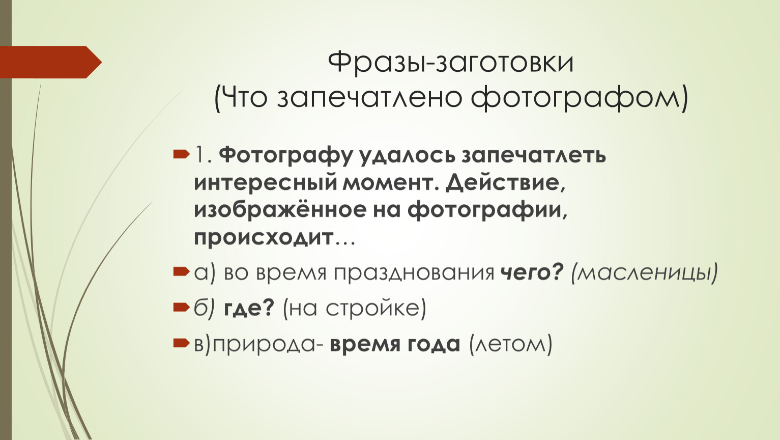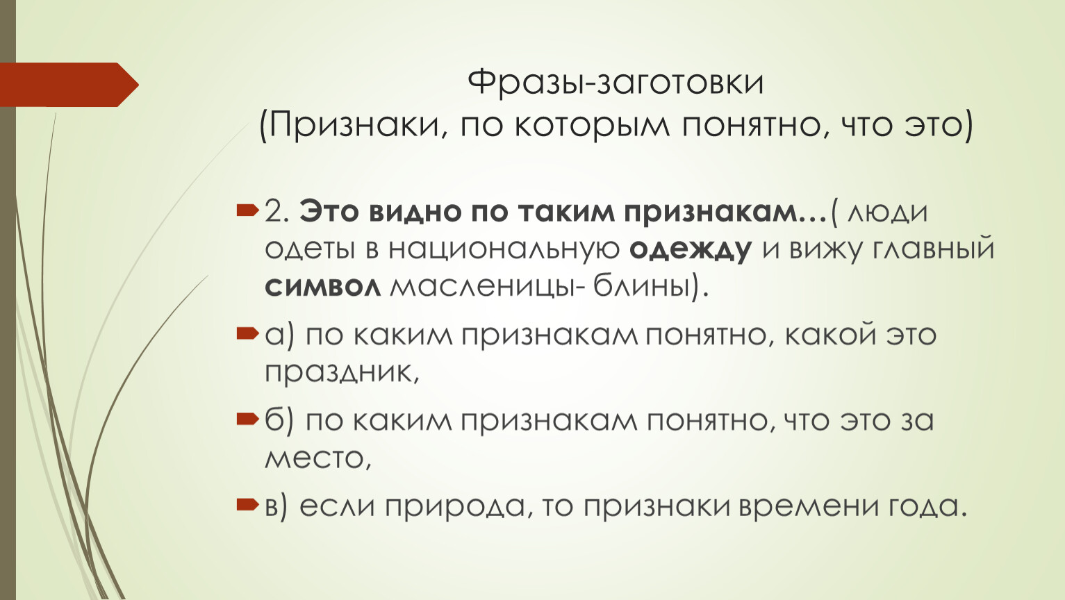 Фразы-заготовки(Признаки, по которым понятно, что это)