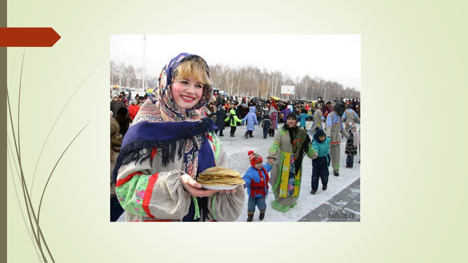 2. Это видно по таким признакам…( люди одеты в национальную одежду и вижу главный символ масленицы- блины).