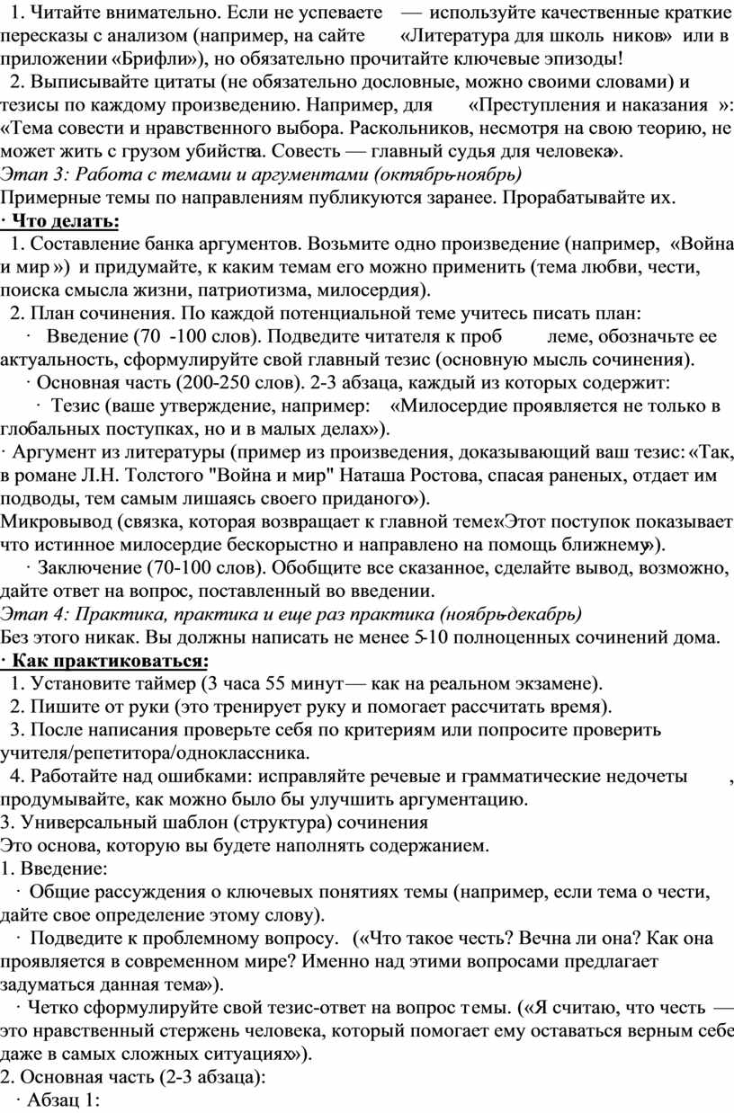 1. Составление банка аргументов. Возьмите одно произведение (например, «Война и мир») и придумайте, к каким темам его можно применить (тема любви, чести, поиска смысла жизни, патриотизма, милосердия).