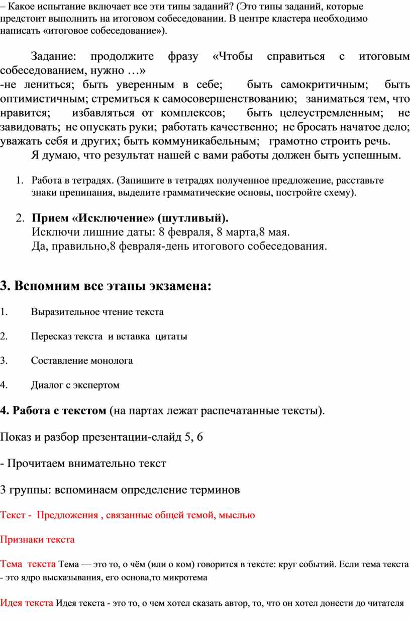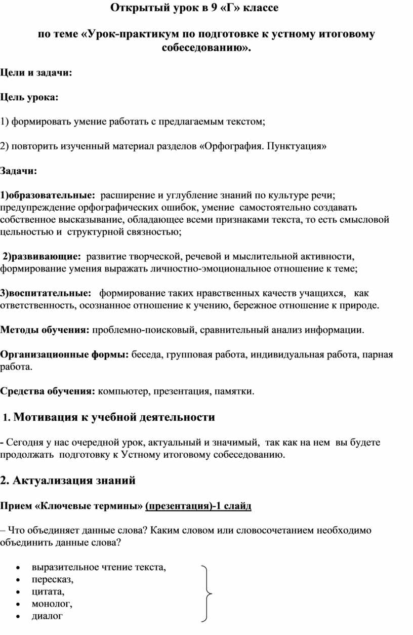 по теме «Урок-практикум по подготовке к устному итоговому собеседованию».