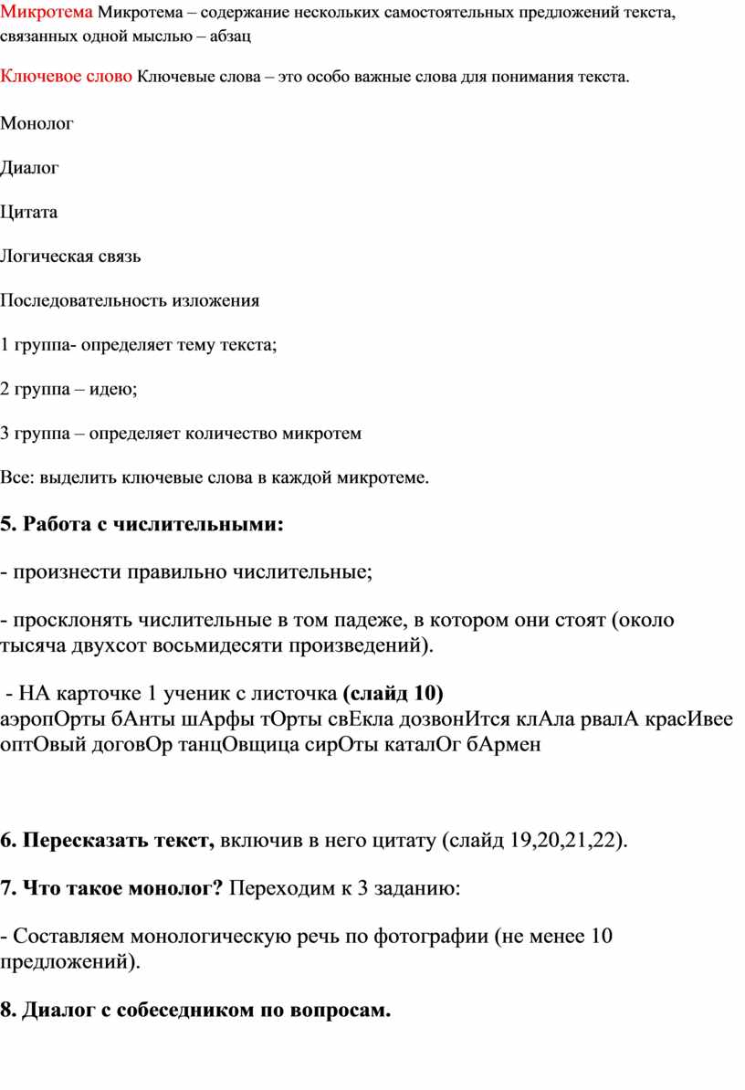 4. Работа с текстом (на партах лежат распечатанные тексты).