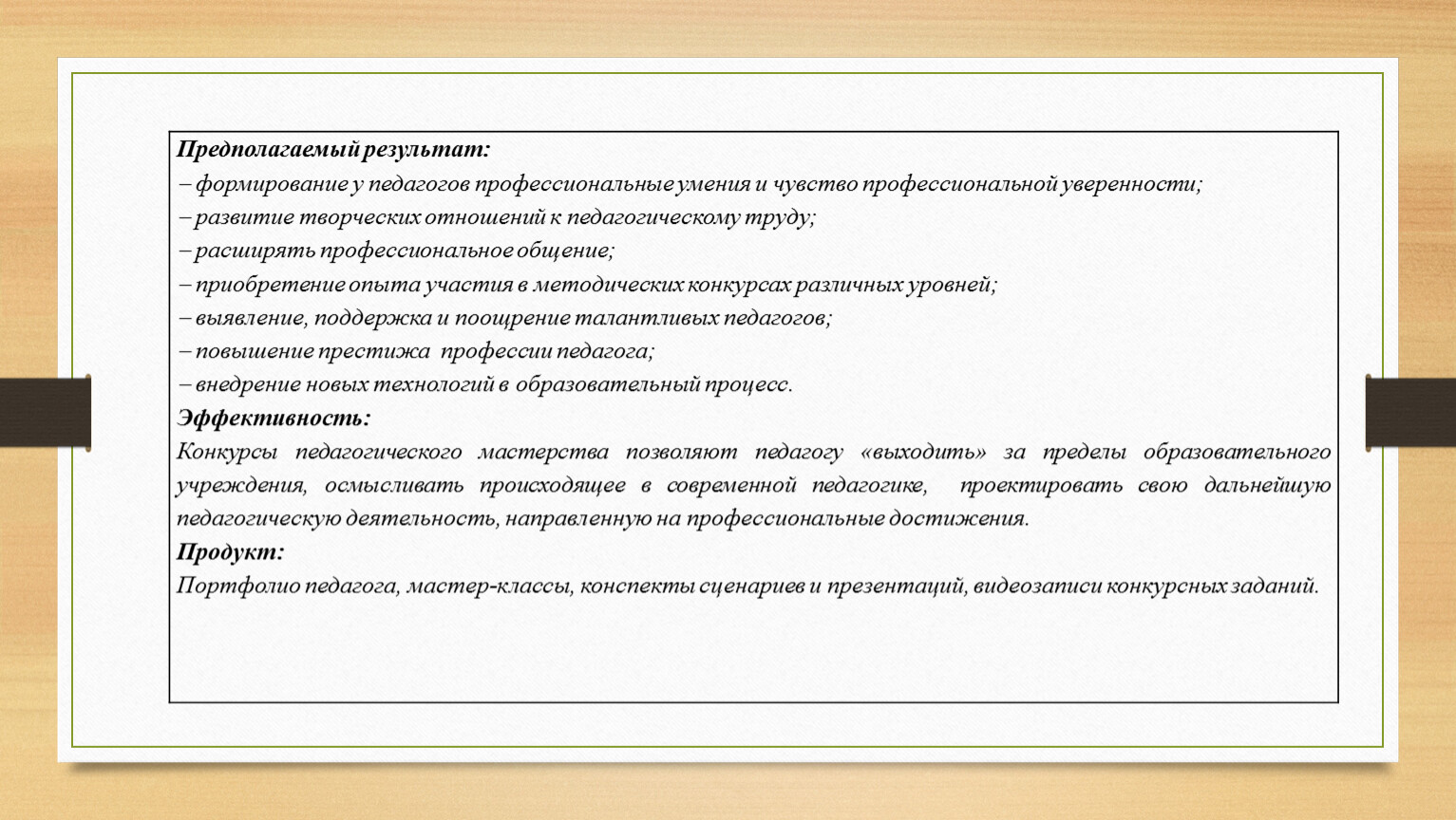 Одним из разнообразных способов мотивации педагога к активной творческой деятельности и самореализации является участие в профессиональных конкурсах мастерства.