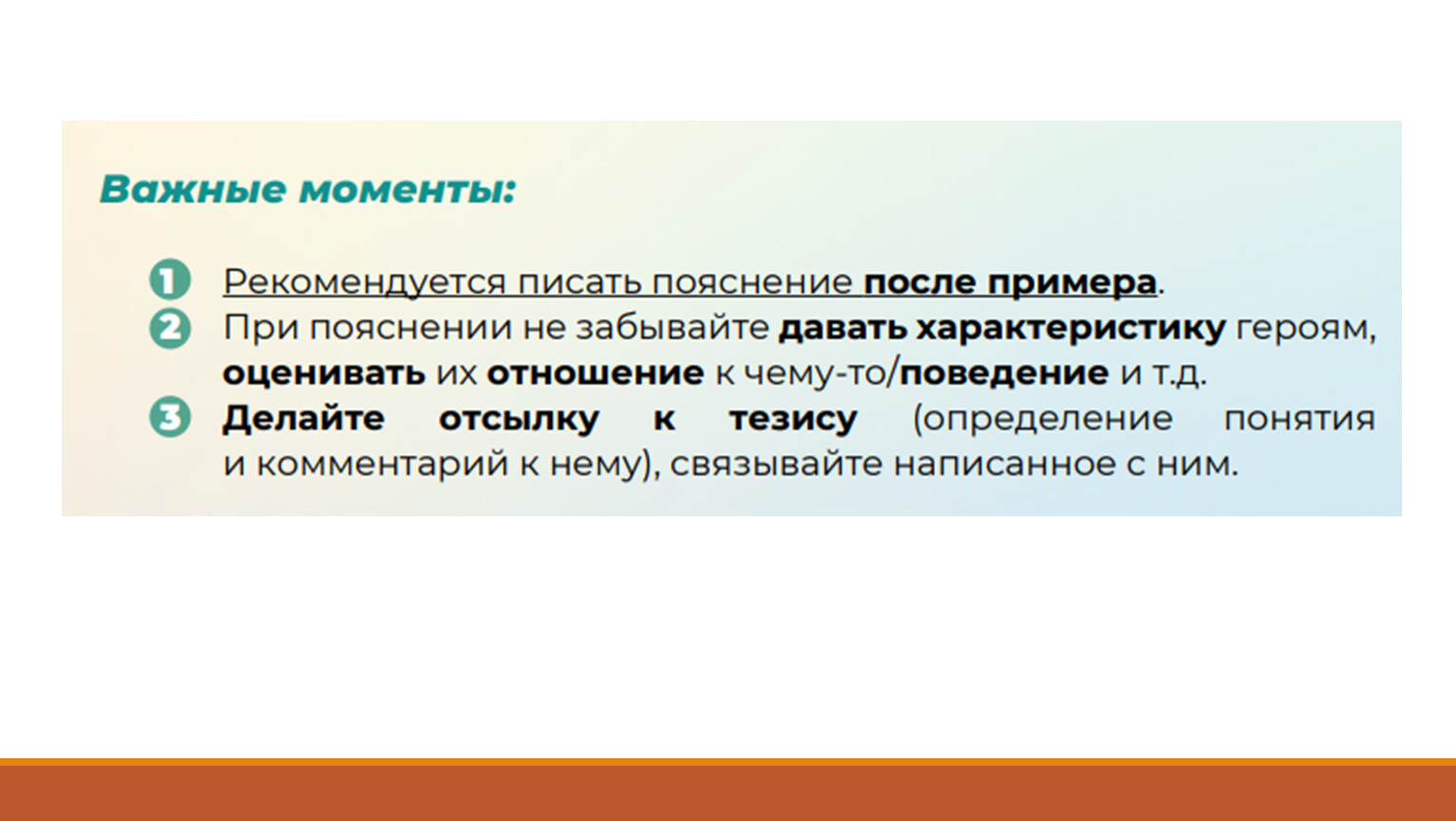 Тезис – это мысль, которую нужно доказать. В тезисе вы должны коротко сформулировать ответ на поставленный в задании вопрос и написать к нему небольшой комментарий.