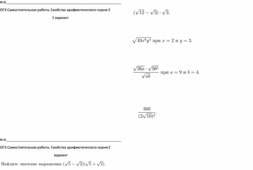ОГЭ Самостоятельная работа. Свойства арифметического корня-1